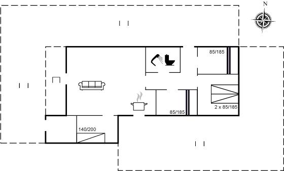 Sommerhuset egner sig til 7 personer samt 1 barn op til 3 år. Ferieboligen er på 69 m² og er bygget i 1984. I 2012 gennemgik ferieboligen en delvis renovering. Det er ikke tilladt at medbringe husdyr. Der er gulvvarme i alle klinkegulve. Ferieboligen har vaskemaskine. Frysekapacitet på 15 liter. Der er desuden brændeovn. Til de små er der 1 stk. barnestol.