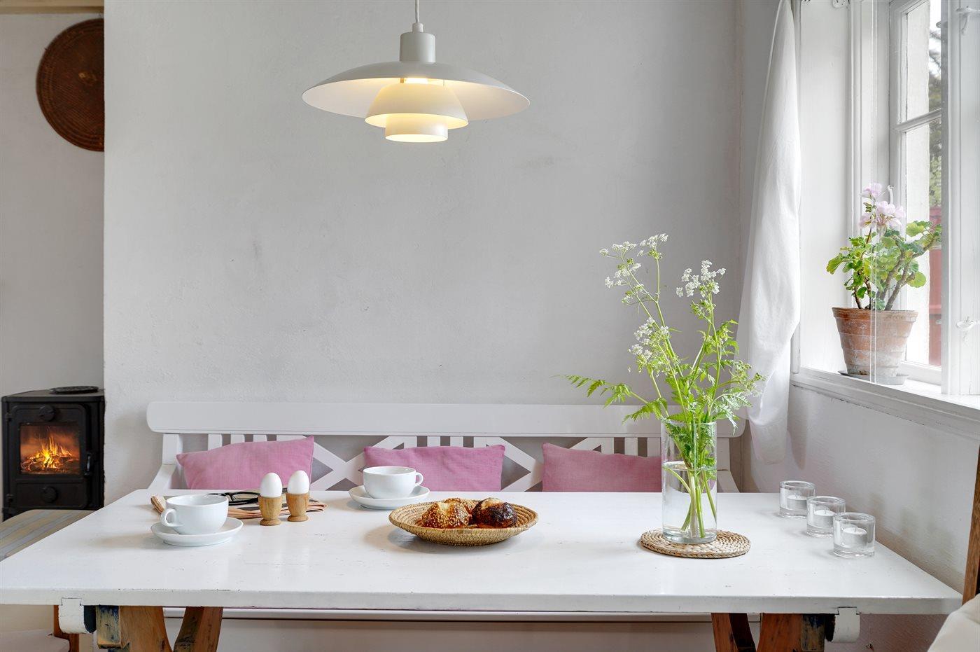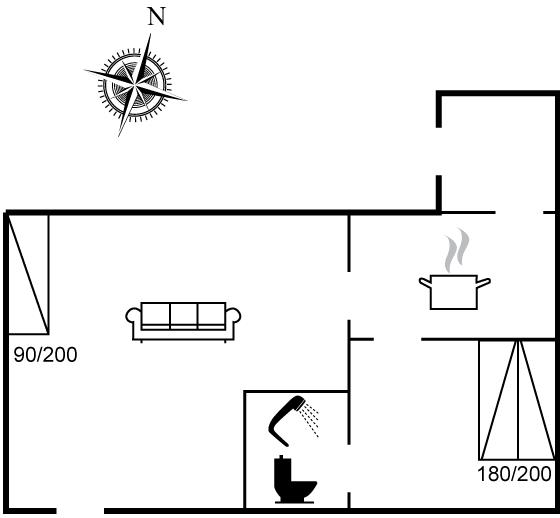 Køkkenet er udstyret med 1 køleskab. Der er 2 gasblus, miniovn.