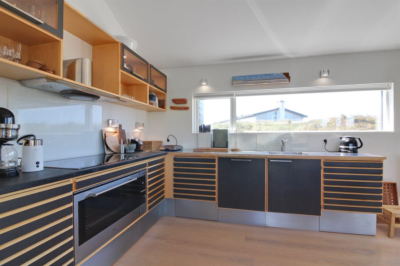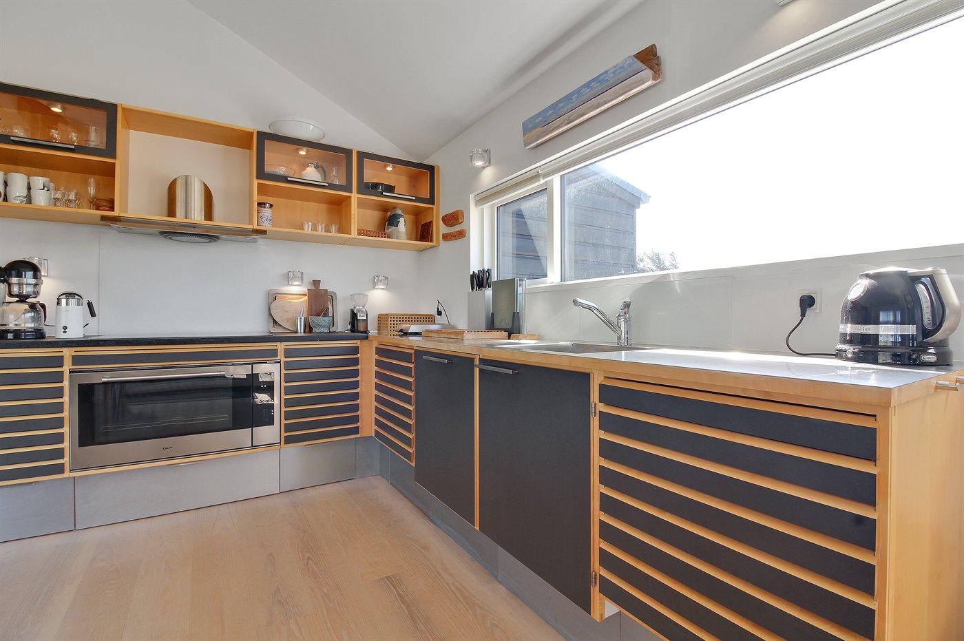 Køkkenet er udstyret med 1 køleskab. Der er 4 induktionskogeplader, varmluftovn samt opvaskemaskine.