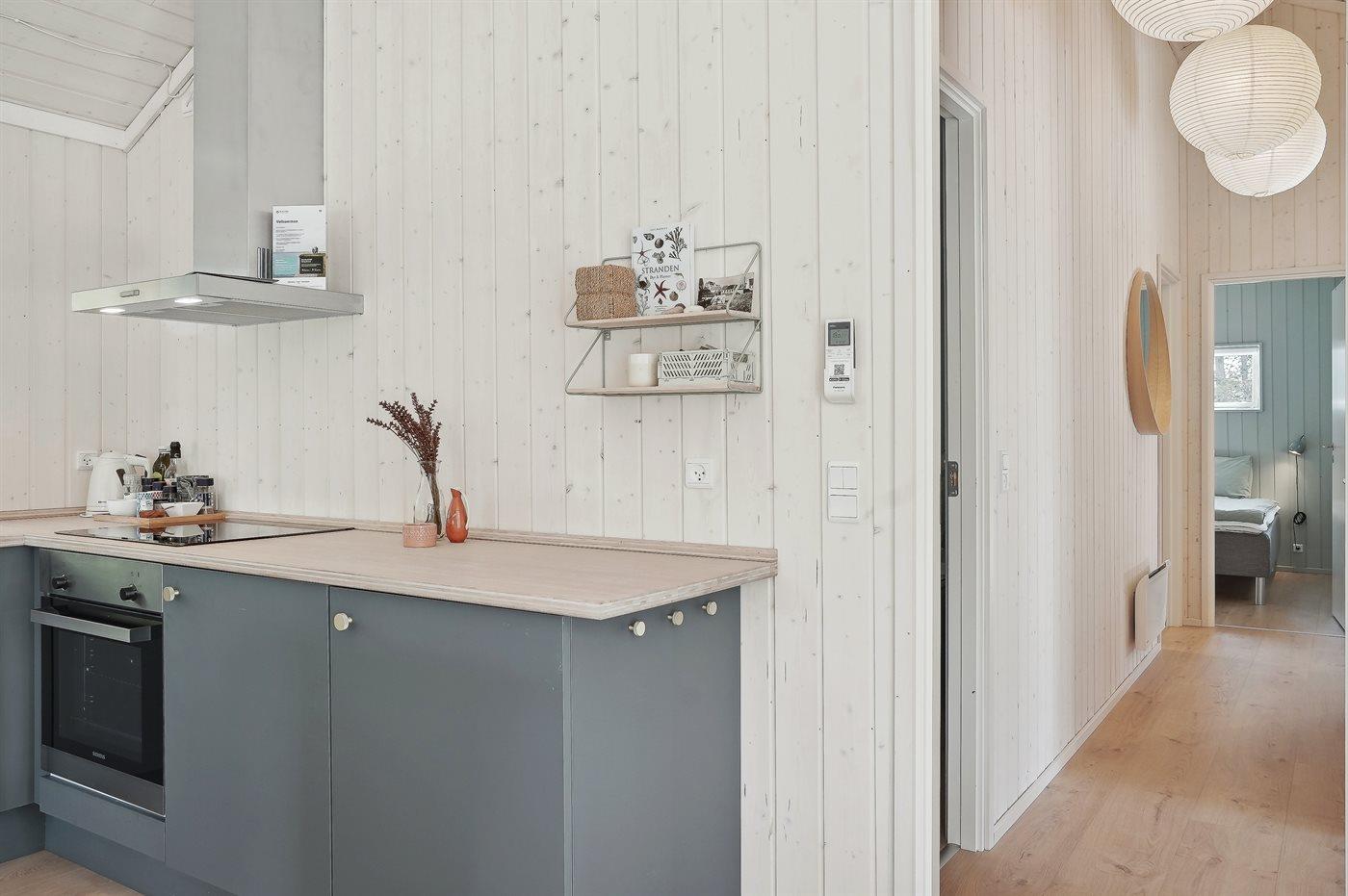 Køkkenet er udstyret med 1 køleskab. Der er 4 induktionskogeplader, varmluftovn samt opvaskemaskine.