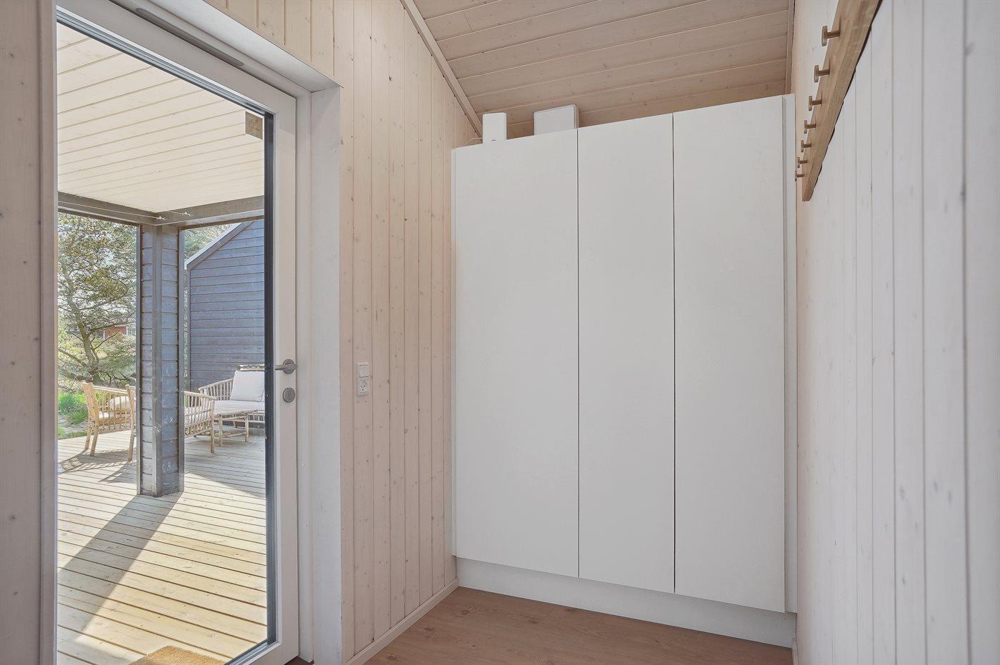 Ferieboligen er beliggende på en 2500 m² stor naturgrund. Der er 500 m til havet. Nærmeste forretning er beliggende i en afstand af 400 m. Til ferieboligen hører åbent terrasseareal. Desuden er der overdækket terrasse. Gynge. Udendørs bruser. Grill til rådighed. Parkering ved ferieboligen.