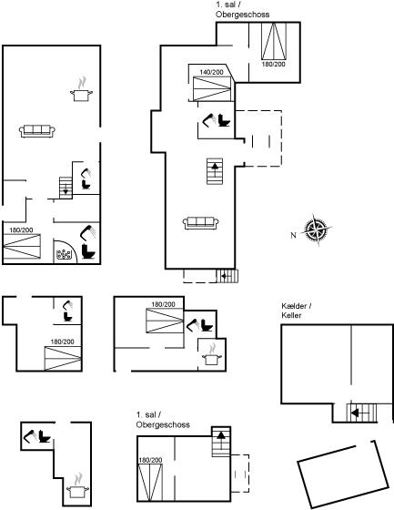 Der er i alt 6 soveværelser. Sovepladserne fordeler sig på: 12 sovepladser i dobbeltsenge.