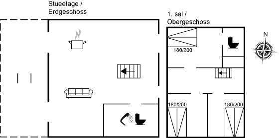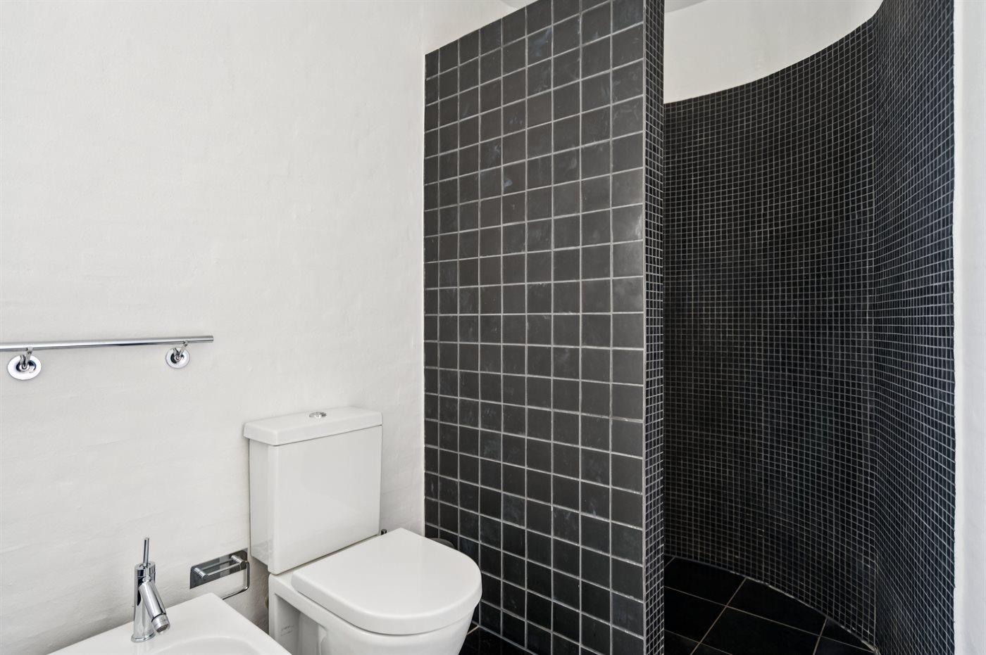 Der er 1 badeværelse med bruseniche og 2 toiletter, heraf 1 gæstetoilet. Der er gulvvarme på 1 badeværelse.