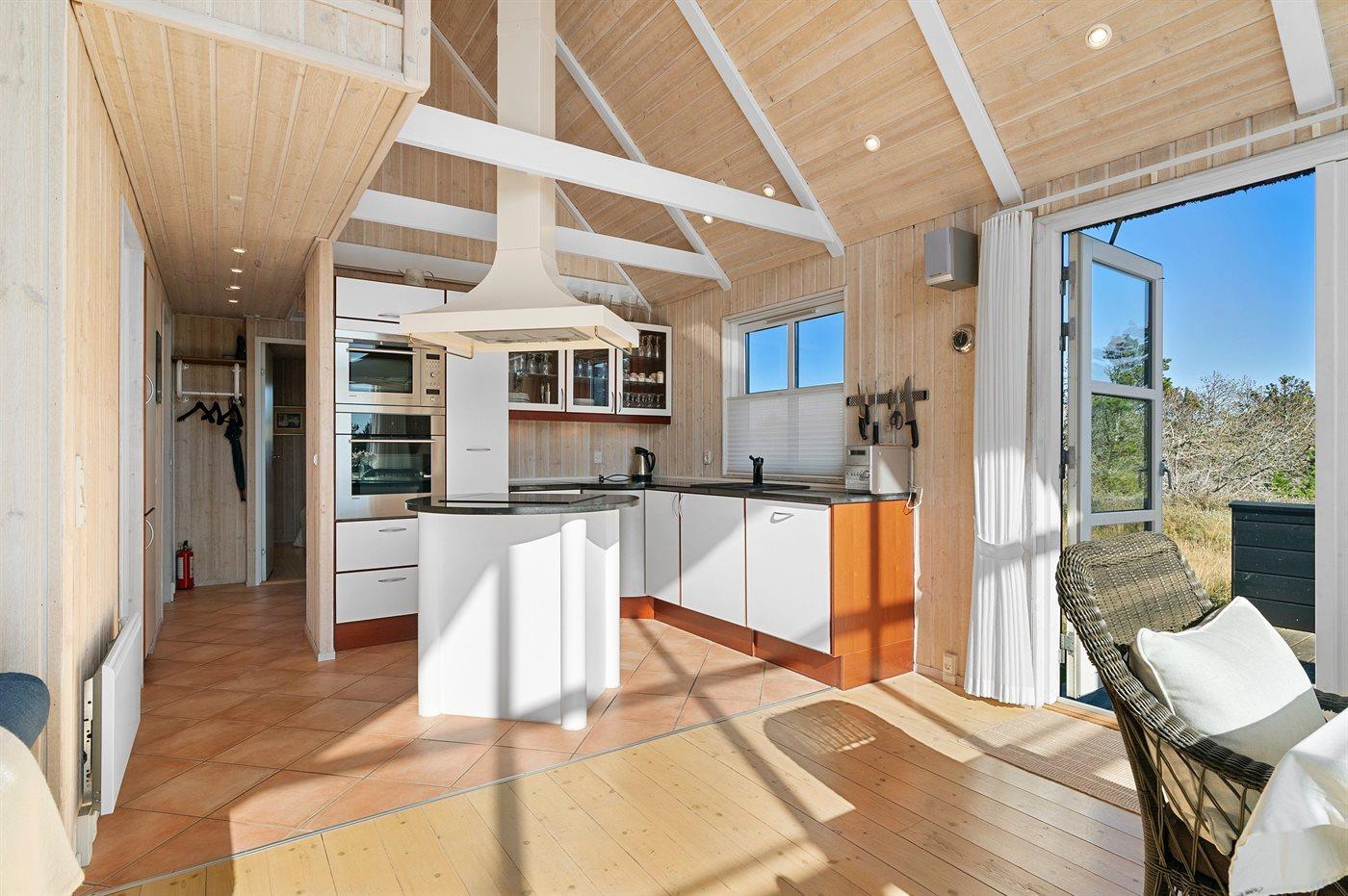 Køkkenet er udstyret med 1 køleskab. Der er 4 keramiske kogeplader, varmluftovn, mikrobølgeovn samt opvaskemaskine.