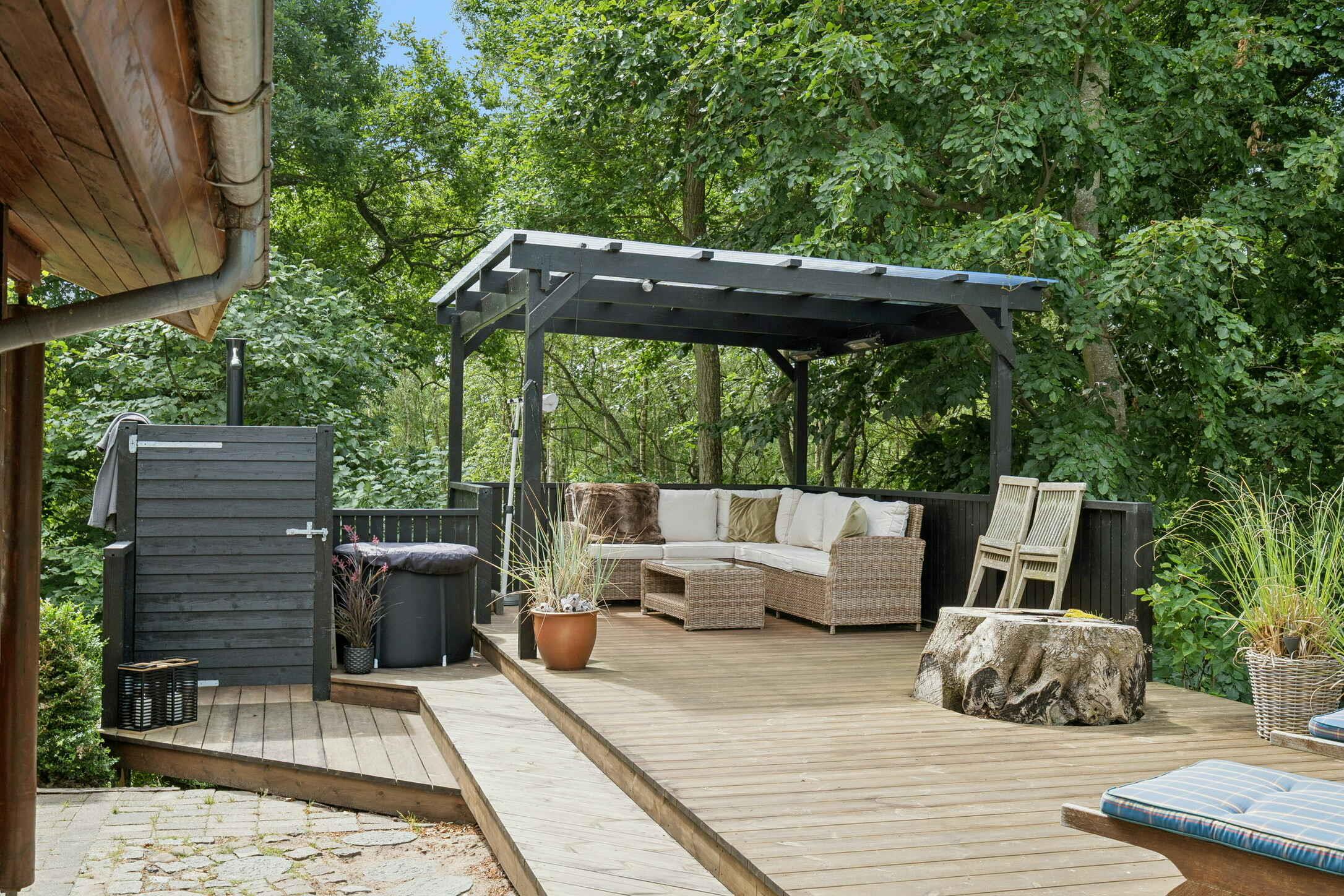 Her får I et indbydende sommerhus på 83 m² med to soveværelser i huset, samt anneks og hems og i alt otte sovepladser – velegnet til både familier og vennegrupper. Huset er hyggeligt og moderne indrettet med fokus på samvær, komfort og afslapning i rolige omgivelser. Opholdsrummet samler køkken, spiseplads og stue i ét, så ferien kan nydes sammen. Her er internet, gode møbler og et lyst udtryk, der gør det nemt at finde feriero – uanset om dagen byder på aktivitet eller afslapning. Udendørs venter et skønt vildmarksbad, hvor I kan nyde varme bade under åben himmel året rundt, samt en udebruser og icebuket til at køle ned. Haven byder ligeledes på et udendørs bordtennisbord og de mange terrasser giver plads til både morgenkaffe, grillmiddage og lange sommeraftener i fredelige omgivelser. Området omkring sommerhuset byder på klassiske feriekvaliteter. Kun ca. 500 meter væk ligger en børnevenlig strand med sand og lavt vand, perfekt til badning og stranddage. Kysten indbyder til gåture, fiskeri og rolige aftener med udsigt over vandet. Områdets natur byder på mange stier gennem skov, hede og kystlandskab, som er oplagte til vandre- og cykelture. Området er roligt, men samtidig tæt på sommerbyer med indkøb, caféer, isboder og små butikker. Der er også gode muligheder for udflugter på Djursland, hvor I finder et væld af seværdigheder og aktiviteter, uanset om I søger kultur, natur eller familieaktiviteter. Inden for en times kørsel fra huset kan I bl.a. besøge: - Djurs Sommerland (20 min) - 3 fantastiske dyreparker (alle 30-40 min væk): Skandinavisk Dyrepark, Ree Park Safari og Munkholm Zoo. - Århus (1 time) som bl.a. byder på nogle fantastiske museer (bl.a. Aros og Moesgaard), en hyggelig bymidte, gode restauranter, Tivoli, et imponerende havneområde med badefaciliteter - Ebeltoft (45 min), en hyggelig gammel by, hvor du kan gå en tur gennem de små gader og besøge Fregatten Jylland (et dansk krigsskib fra 1860) og Maltfabrikken. - Mols Bjerge (40 min), en smuk nationalpark med gode vandrestier og flot natur samt ruinen Kalø Slotsruin. - Randers Regnskov (40 min) - Kattegatcenteret (30 min) - Lübker Golf Resort & Spa (20 min)
