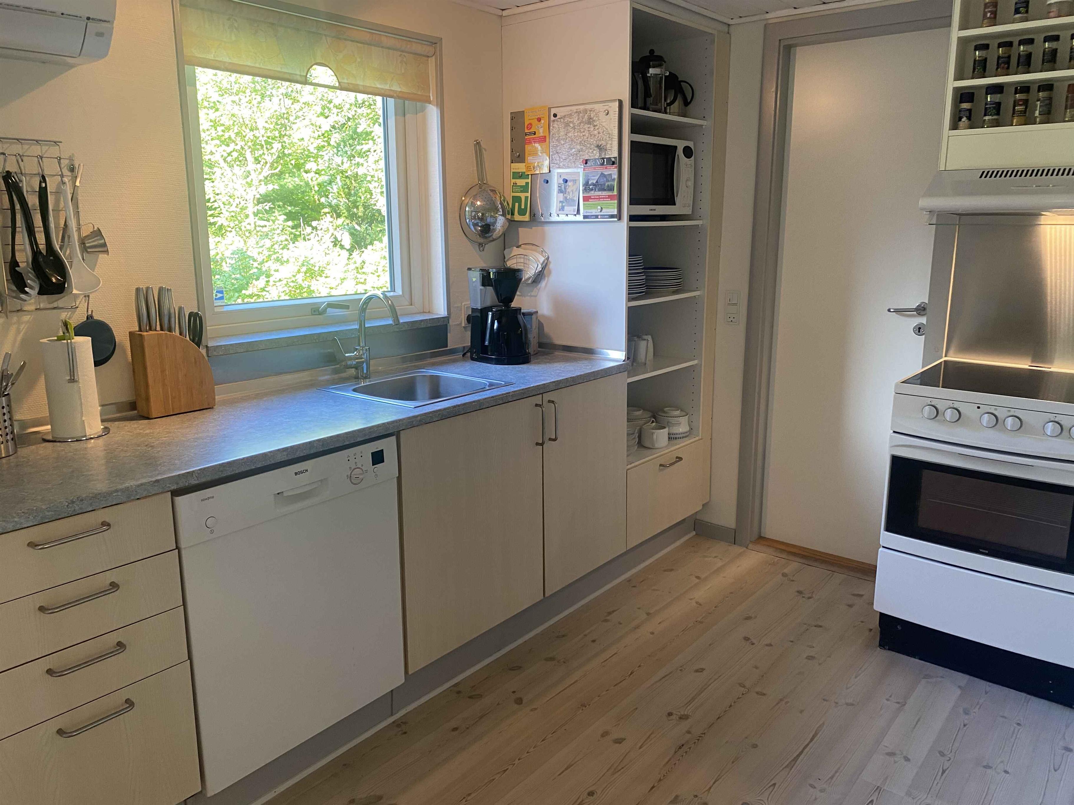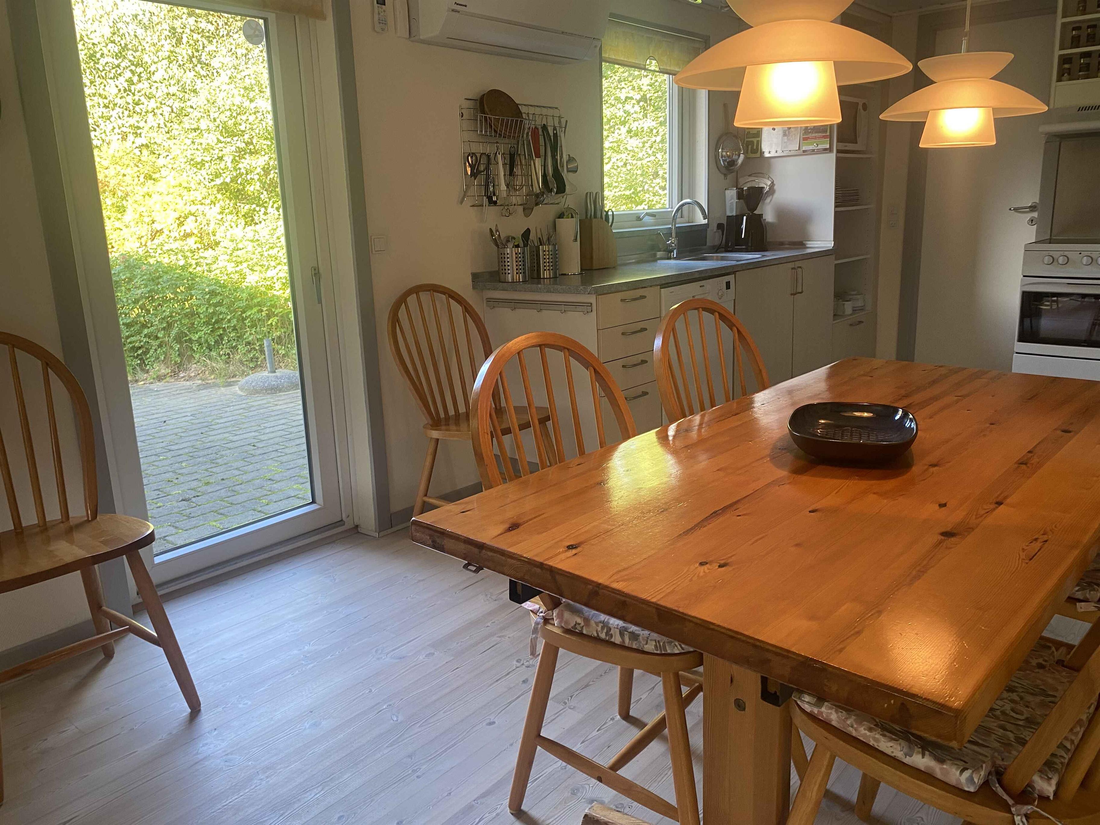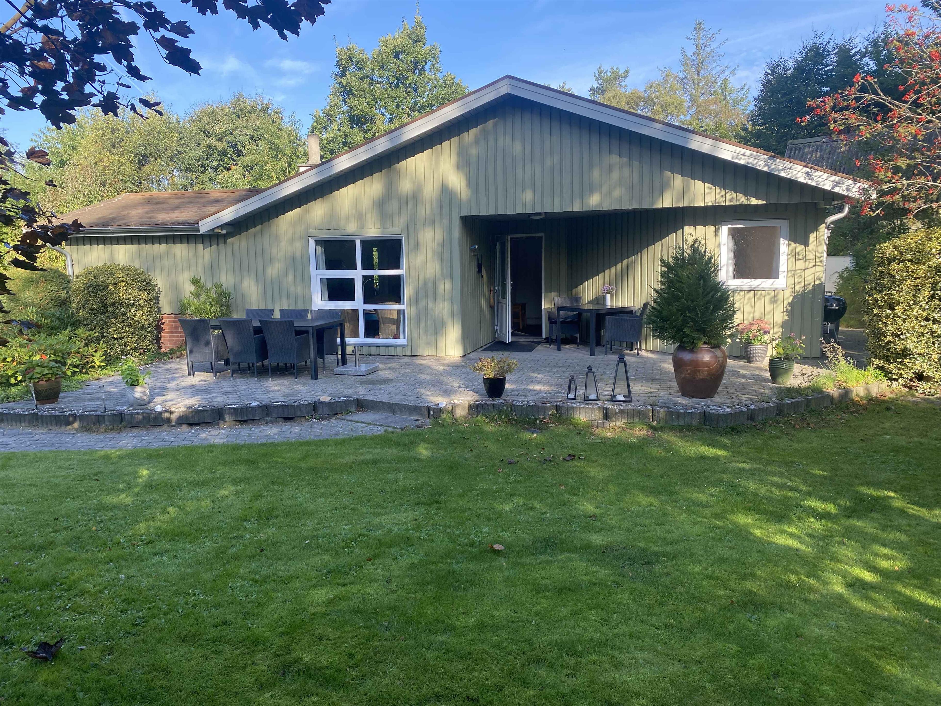 Dette velholdte og hyggelige sommerhus ligger i et skovområde i den østlige ende af skønne Fjellerup Strand på Norddjurs og har en dejlig, stor have med både gynger og sandkasse til børnene. Huset har et dejligt køkken med opvaskemaskine i åben forbindelse med en praktisk spiseplads og med stuen, der er indrettet med en stor hjørnesofa, som familien kan hygge sig i foran fjernsynet. Skal der spilles brætspil, er der også et ”spillebord” med kurvestole omkring. Så kan familien være sammen, også selv om de laver forskellige aktiviteter. Der er brændeovn og også varmepumpe. Huset har 3 soveværelser. Det ene soveværelse er indrettet med en dobbeltseng og det andet med to enkeltsenge. Det tredje soveværelse har køjesenge med i alt 4 sovepladser. Her kan børnene rigtig hygge sig om aftenen og nyde feriestemningen. Der er et badeværelse med skabsmiljø, brusebad og toilet samt et ekstra toilet med håndvask. Her er også vaskemaskine og tørretumbler. I haven står der et kæmpestort og smukt egetræ. Der er en skøn, stor åben terrasse med havemøbler, kulgrill, to liggestole og to sol-vogne. Der er også en overdækket terrasse, hvor man kan sidde og nyde den velholdte have, selv om solen måske ikke står højt på himlen. Huset har et aflåst ekstra-rum med yderligere et køle- og fryseskab, hvis I har brug for ekstra køle/fryse kapacitet på de varme dage. Det er tilgang til rummet fra terrassen, og lejerne må gerne låse sig ind i dette rum. Den nærliggende strand er en rolig og børnevenlig sandstrand med små klitter og lav vanddybde. I området er der også gode cykelruter. 12 km syd for Fjellerup Strand kan I besøge Nordens største sommerland – Djurs Sommerland, der bl.a. har Danmarks største rutsjebane, et kæmpestort vandland samt mange forskellige forlystelser, så hele familien kan få en rigtig sjov feriedag. Ligeledes 12 km fra huset ligger Lübker Golfresort hvor du finder landets bedste golfbaner. I Allingåbro knap 20 km fra huset kan man i sæsonen leje skinnecykler og forsøge sig med denne alternative transportform på den ca. 17 km lange strækning fra Allingåbro til Kristrup. Man kan også leje kano her, hvis man er mere til rolig å-sejlads. I Grenå ca. 25 km fra huset kan I blandt andet kan besøge Kattegatcenteret. Kattegatcenteret har mere end 250 forskellige dyrearter fra hele verden. I Grenå kan I også handle og gå på cafe og restaurant. Obs, udlejes ikke til erhversmæssigt brug.