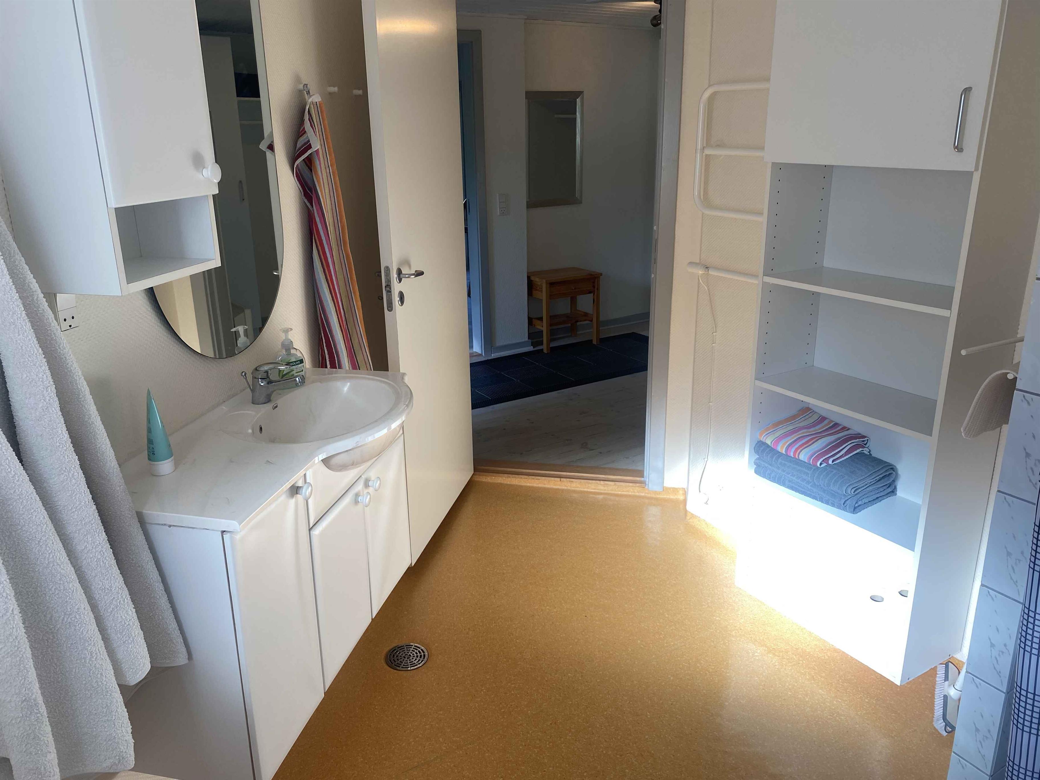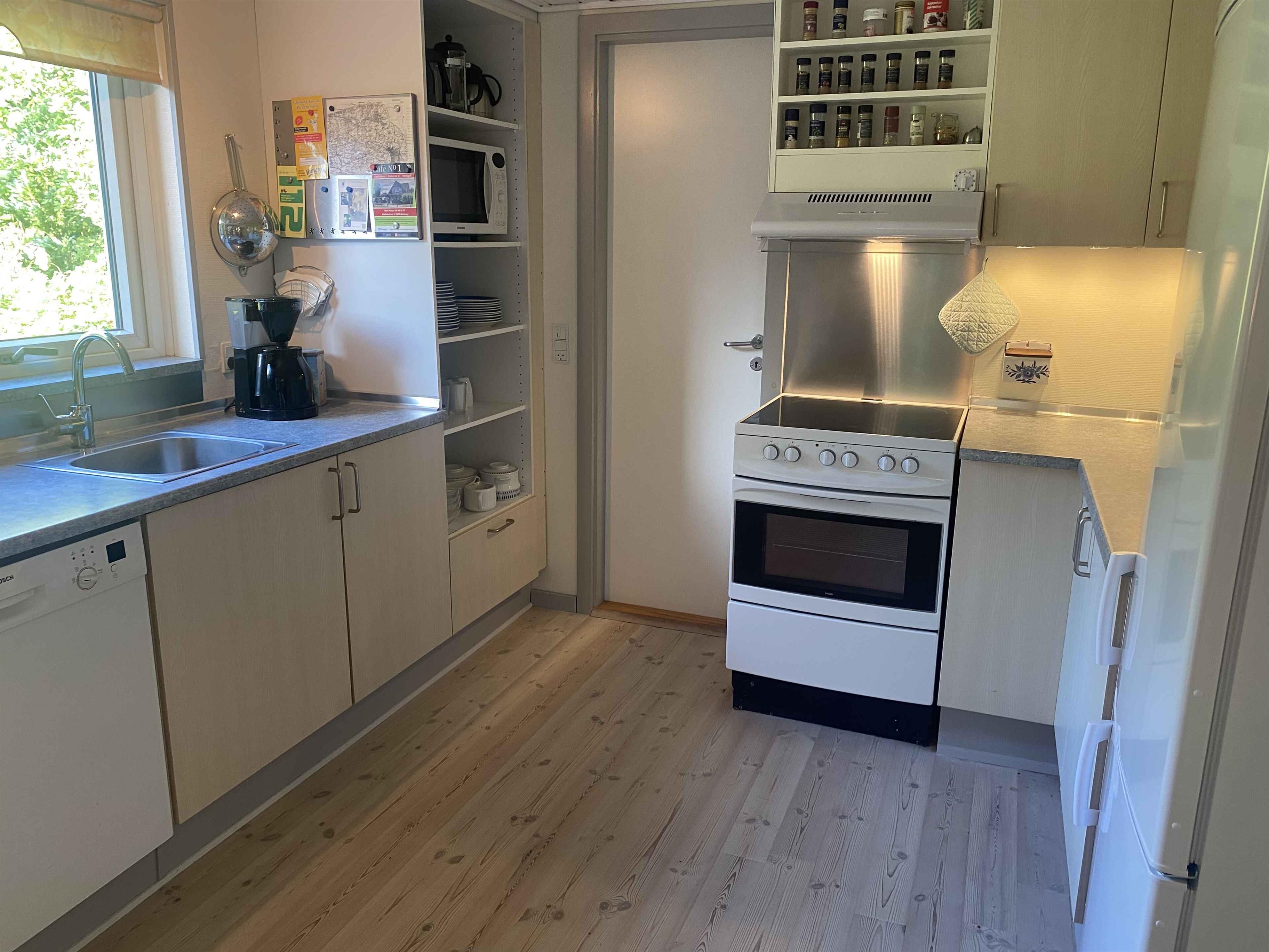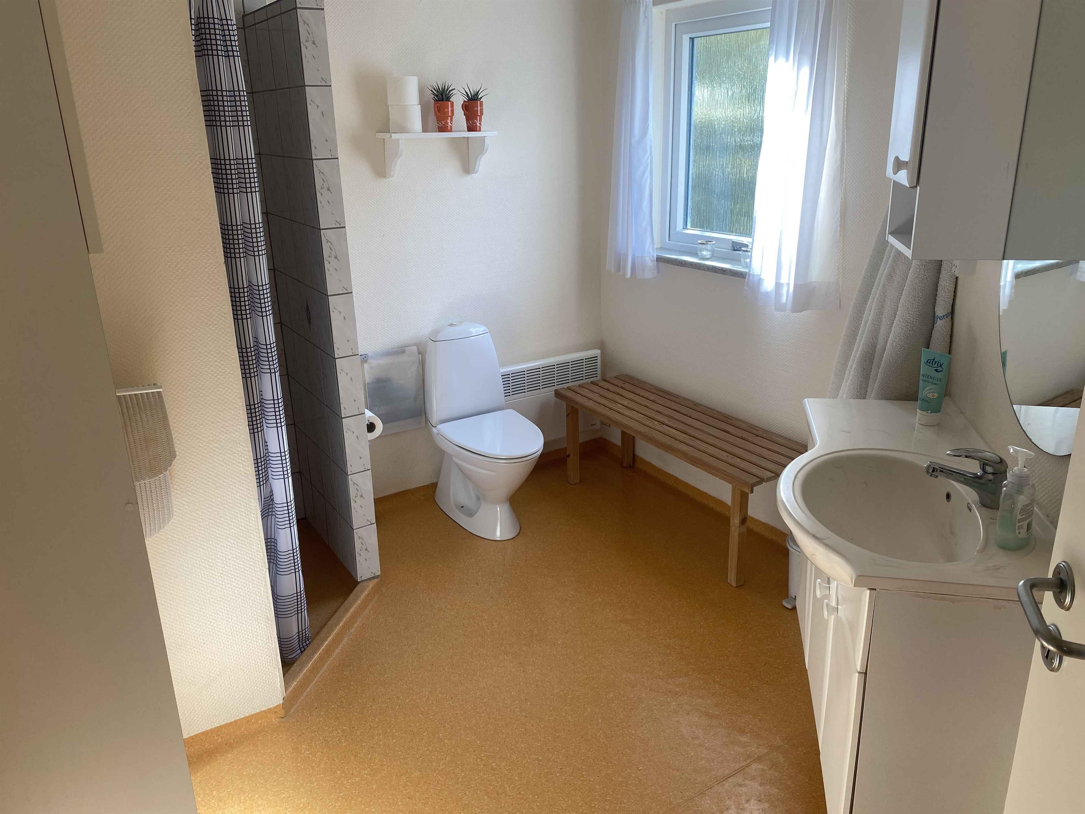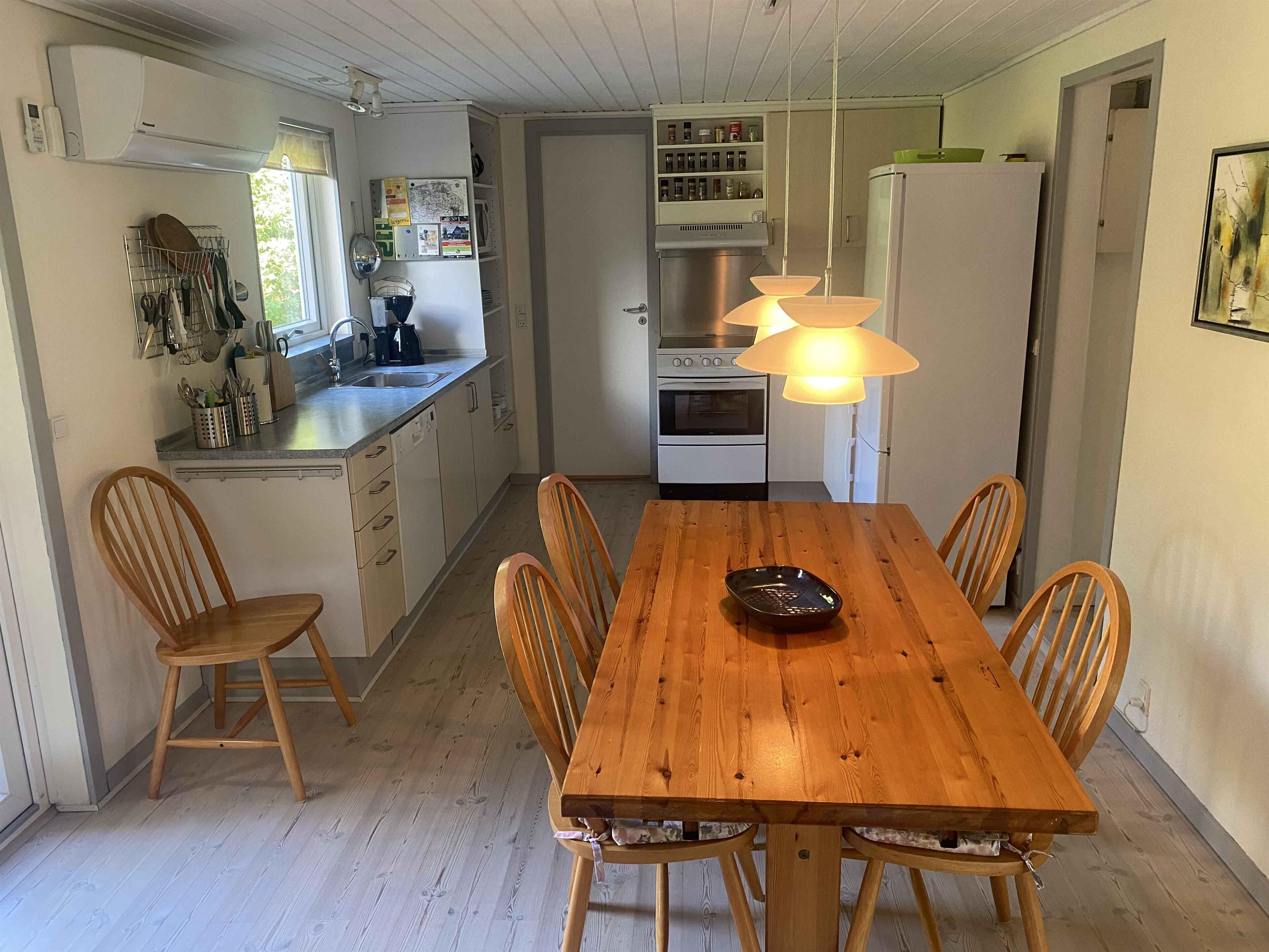 Dette velholdte og hyggelige sommerhus ligger i et skovområde i den østlige ende af skønne Fjellerup Strand på Norddjurs og har en dejlig, stor have med både gynger og sandkasse til børnene. Huset har et dejligt køkken med opvaskemaskine i åben forbindelse med en praktisk spiseplads og med stuen, der er indrettet med en stor hjørnesofa, som familien kan hygge sig i foran fjernsynet. Skal der spilles brætspil, er der også et ”spillebord” med kurvestole omkring. Så kan familien være sammen, også selv om de laver forskellige aktiviteter. Der er brændeovn og også varmepumpe. Huset har 3 soveværelser. Det ene soveværelse er indrettet med en dobbeltseng og det andet med to enkeltsenge. Det tredje soveværelse har køjesenge med i alt 4 sovepladser. Her kan børnene rigtig hygge sig om aftenen og nyde feriestemningen. Der er et badeværelse med skabsmiljø, brusebad og toilet samt et ekstra toilet med håndvask. Her er også vaskemaskine og tørretumbler. I haven står der et kæmpestort og smukt egetræ. Der er en skøn, stor åben terrasse med havemøbler, kulgrill, to liggestole og to sol-vogne. Der er også en overdækket terrasse, hvor man kan sidde og nyde den velholdte have, selv om solen måske ikke står højt på himlen. Huset har et aflåst ekstra-rum med yderligere et køle- og fryseskab, hvis I har brug for ekstra køle/fryse kapacitet på de varme dage. Det er tilgang til rummet fra terrassen, og lejerne må gerne låse sig ind i dette rum. Den nærliggende strand er en rolig og børnevenlig sandstrand med små klitter og lav vanddybde. I området er der også gode cykelruter. 12 km syd for Fjellerup Strand kan I besøge Nordens største sommerland – Djurs Sommerland, der bl.a. har Danmarks største rutsjebane, et kæmpestort vandland samt mange forskellige forlystelser, så hele familien kan få en rigtig sjov feriedag. Ligeledes 12 km fra huset ligger Lübker Golfresort hvor du finder landets bedste golfbaner. I Allingåbro knap 20 km fra huset kan man i sæsonen leje skinnecykler og forsøge sig med denne alternative transportform på den ca. 17 km lange strækning fra Allingåbro til Kristrup. Man kan også leje kano her, hvis man er mere til rolig å-sejlads. I Grenå ca. 25 km fra huset kan I blandt andet kan besøge Kattegatcenteret. Kattegatcenteret har mere end 250 forskellige dyrearter fra hele verden. I Grenå kan I også handle og gå på cafe og restaurant. Obs, udlejes ikke til erhversmæssigt brug.