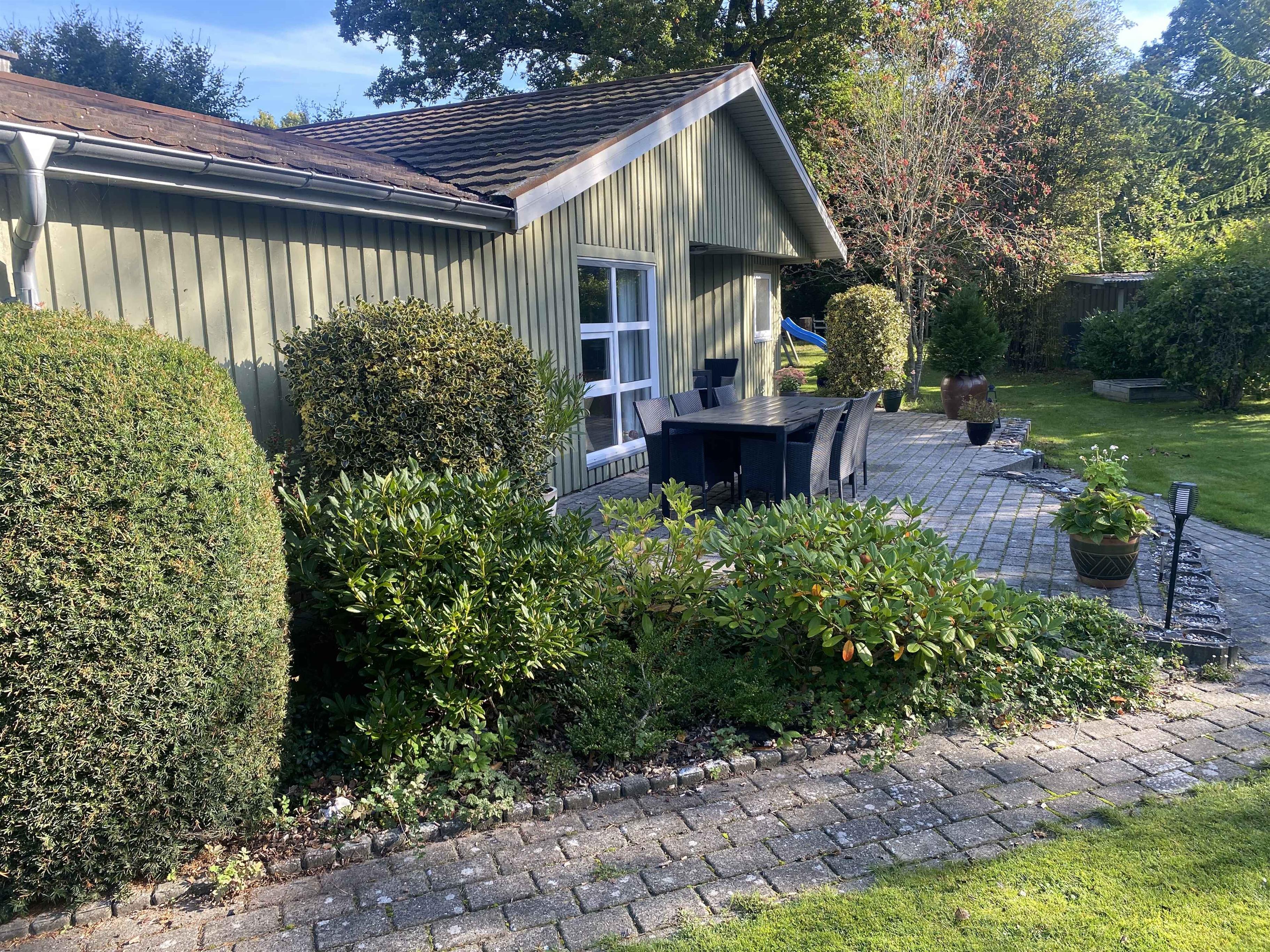 Dette velholdte og hyggelige sommerhus ligger i et skovområde i den østlige ende af skønne Fjellerup Strand på Norddjurs og har en dejlig, stor have med både gynger og sandkasse til børnene.