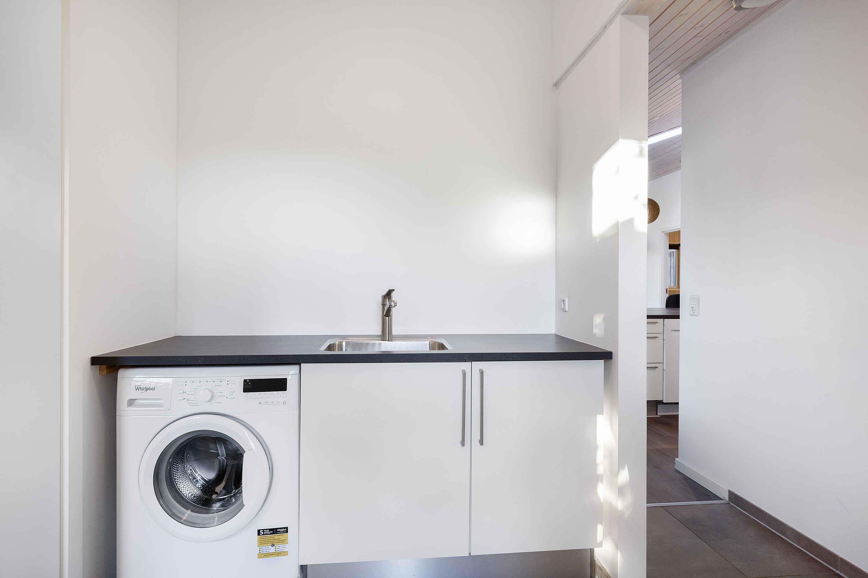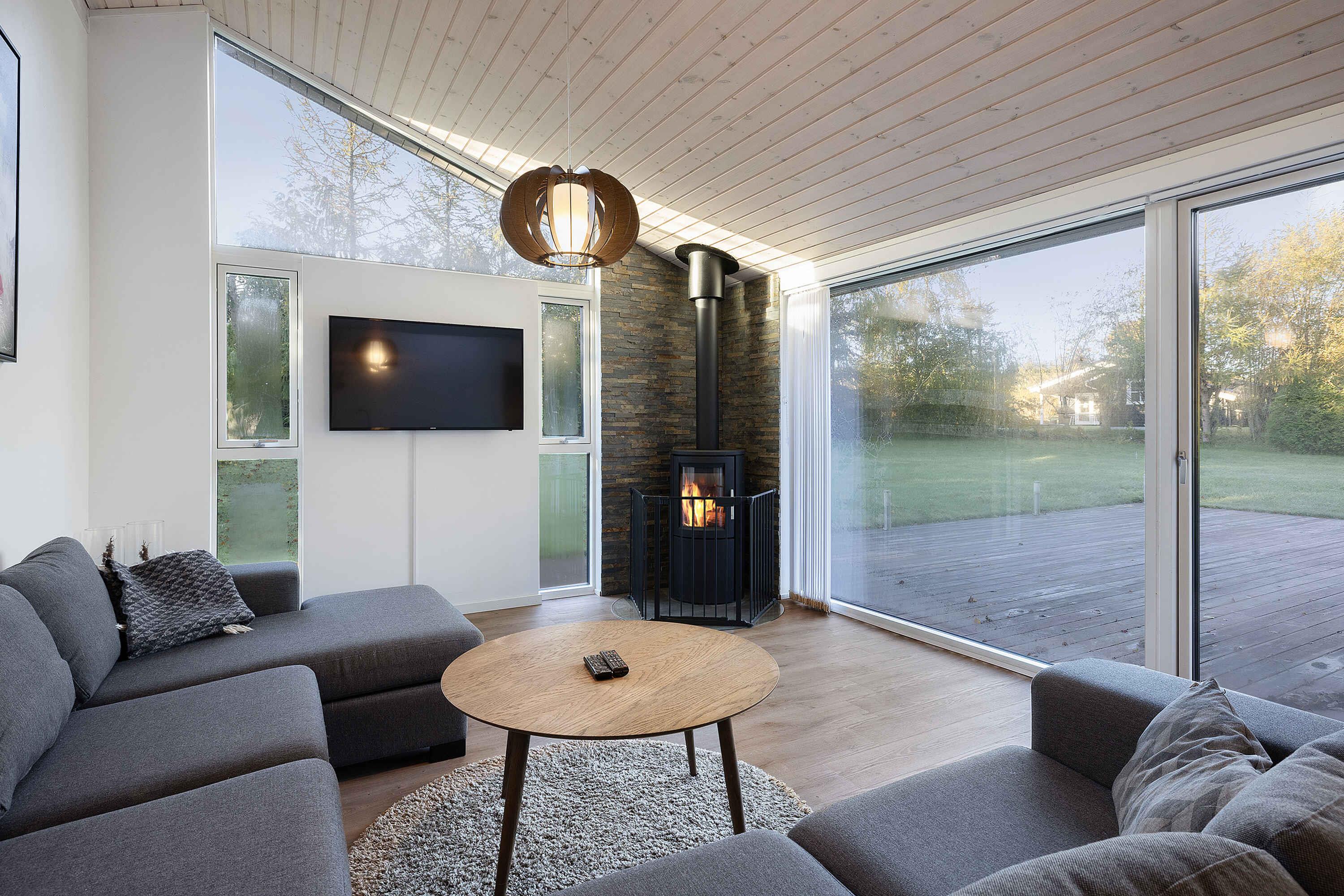 Charmerende sommerhus i Fjellerup med indendørs spa, sauna og stor terrasse tæt på børnevenlig strand.