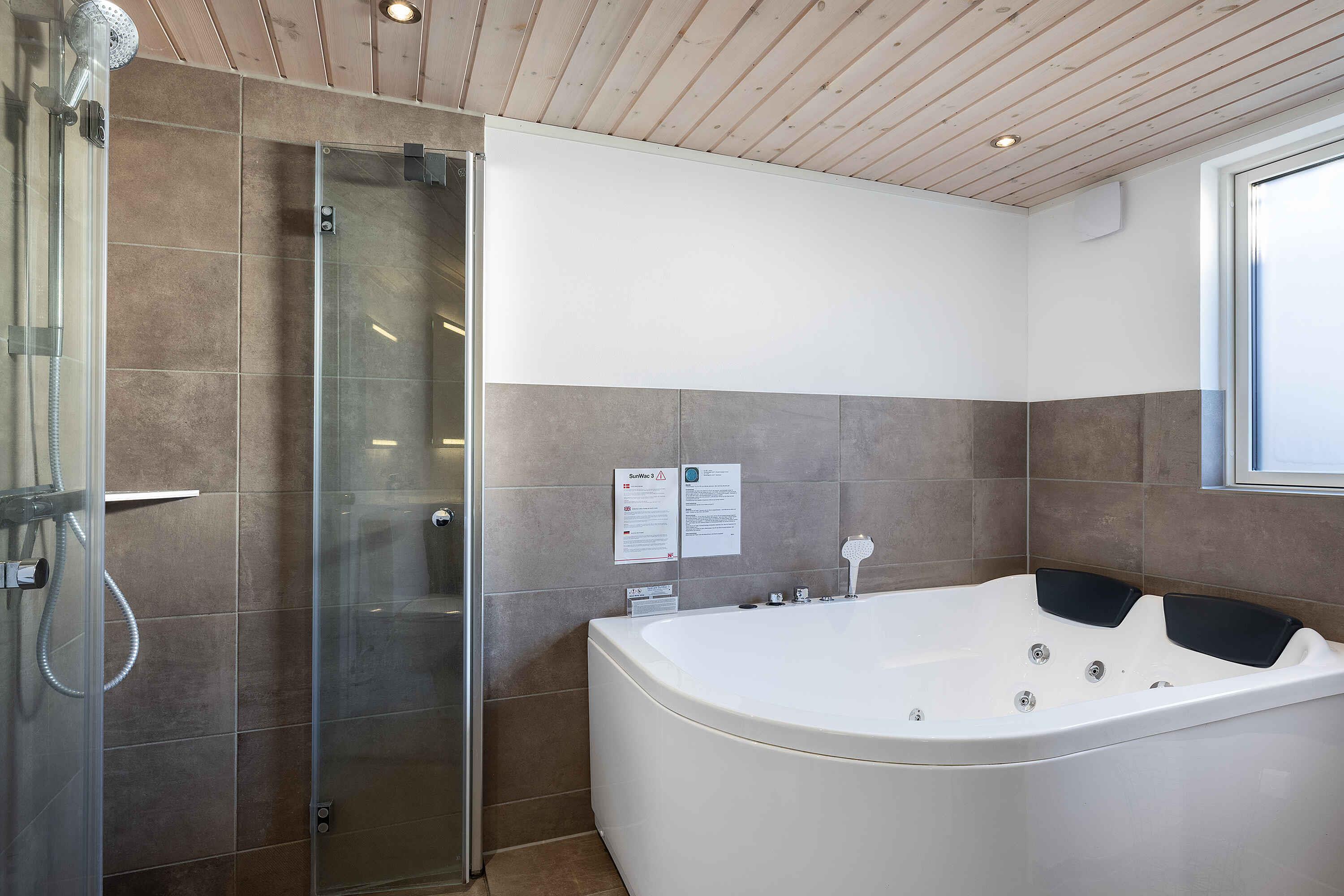 Lækkert nyt feriehus med spa og sauna kun 500 m fra børnevenlig strand. Stor sydvendt træterasse med udekøkken og grill. Huset ligger roligt og med lukket have.