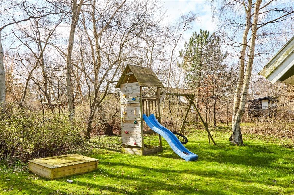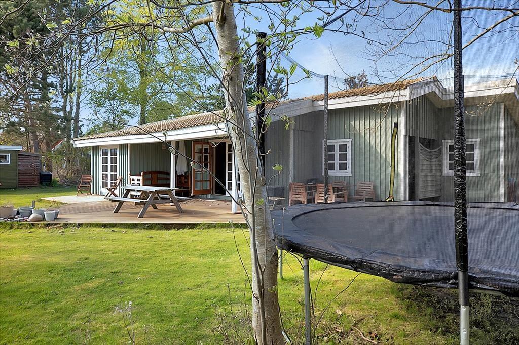 Huset er omkranset af 1200 m2 have, der indbyder til boldspil og leg. Ved terrassen kan der grilles og du kan nyde solen fra morgen til aften.