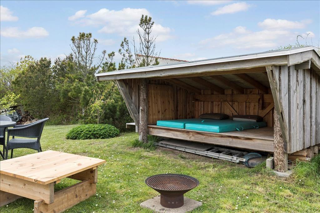 Tagterrassen på førstesalen vil være dit første valg en lun sommeraften, for hver kan I blive siddende den halve nat og tælle stjerner på nattehimlen. Og når søvnen presser sig på skal du bare nogle trin ned for at finde husets shelter i haven, hvis du har lyst til at drømme i det fri.