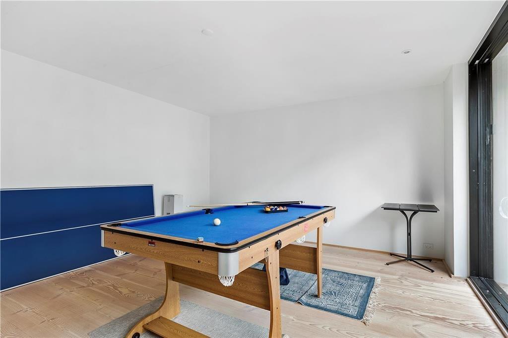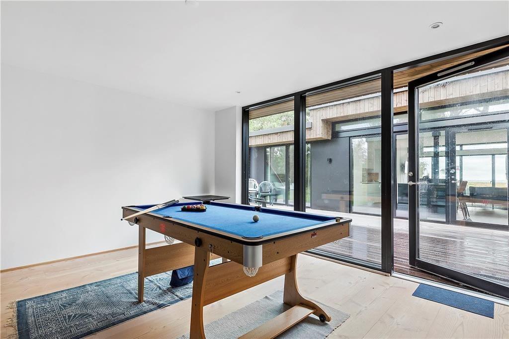 Her er plads til den helt store familie eller to familier fordelt på hele fire soveværelser. Fra det store fællesrum i midten af huset, men også fra to af værelserne kan I nyde kikket ud til havet i timevis eller dagevis og året rundt uanset vind og vejr. I husets aktivitetsrum kan I lege eller spille billard, mens andre kan hygge foran brændeovnen. Når mørket falder på er den store fællessofa med plads til alle arnestedet for samvær og hygge, hvis ikke et brætspil kommer på det store spisebord.