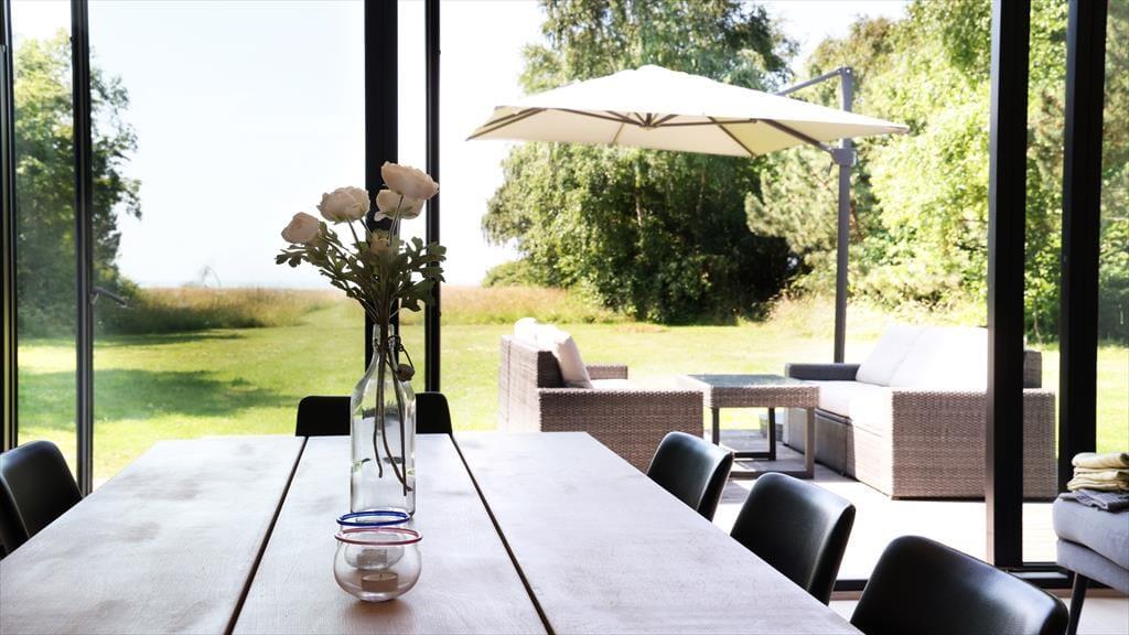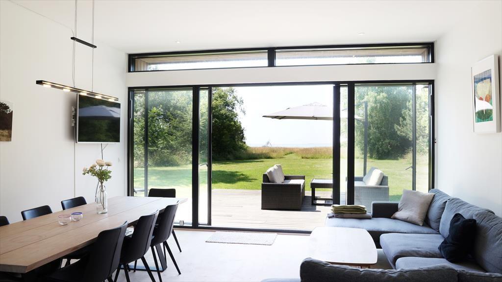Lys, rum og plads til udfoldelser inde som ude er omdrejningspunktet for dette flotte arkitekttegnede sommerhus i vandkanten på Sjællands Odde.