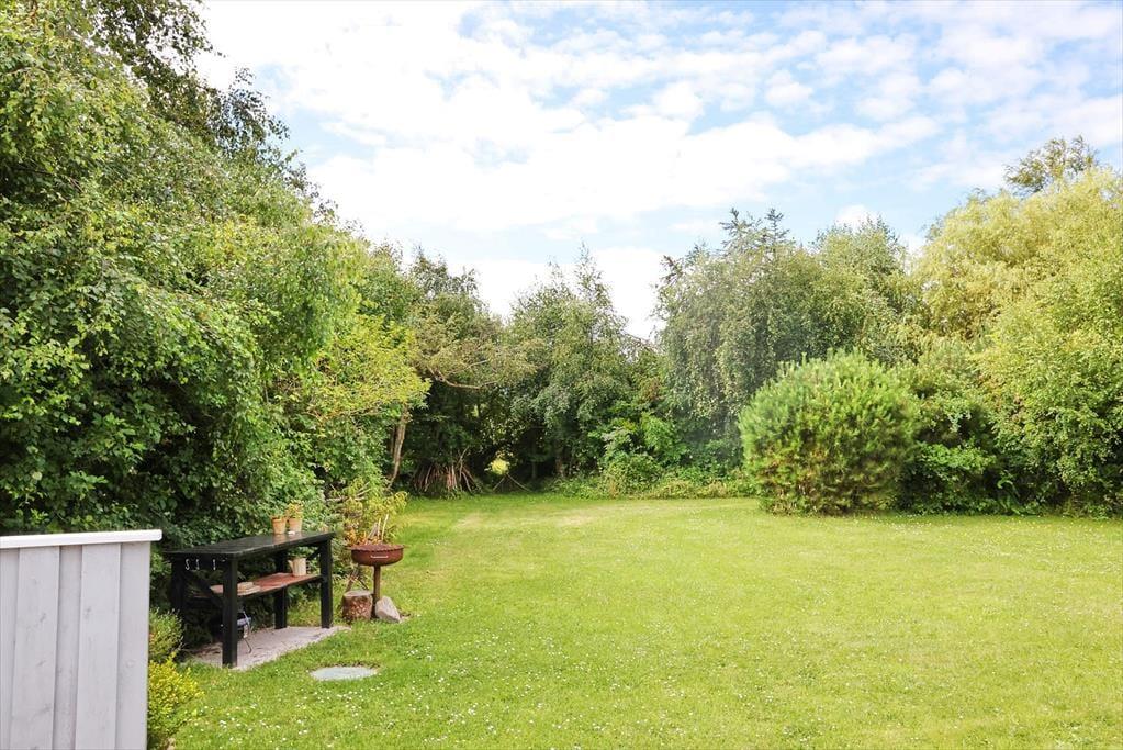 Stor dejlig grund, hvor du både kan opleve fuglesang og se et rådyr gå forbi.