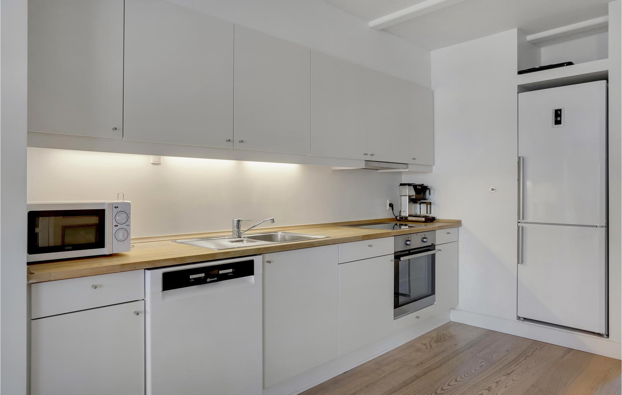Indvendigt er lejligheden smagfuldt indrettet og har et veludstyret køkken. I har også jeres eget wellnessområde med sauna og spabad samt et gæstetoilet. På terrassen kan I hygge jer og slutte dagen af med et grillmåltid og nyde den smukke udsigt.