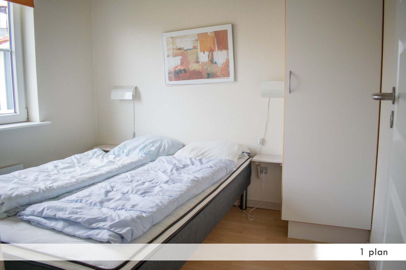 2 soverum begge med dobbeltseng. Gæstetoilet. El-varme og moderne møblering.