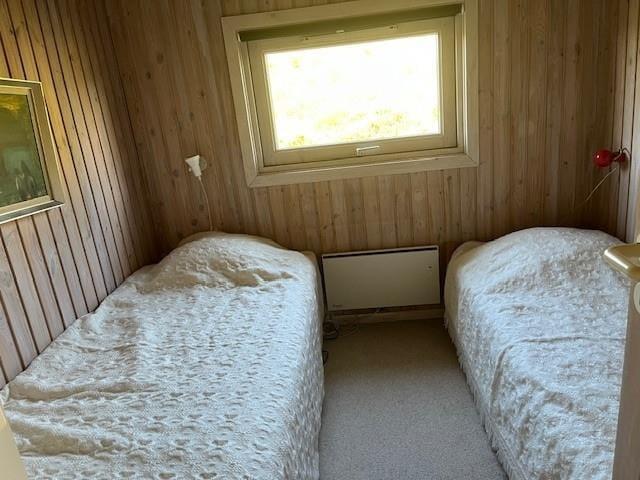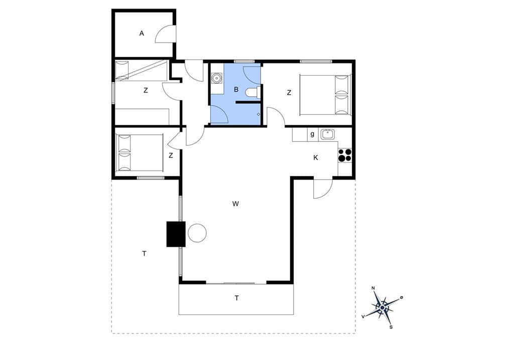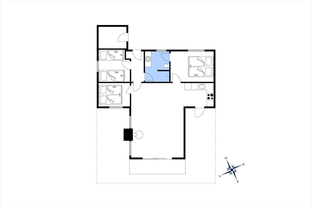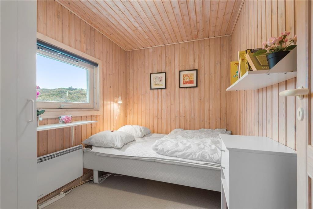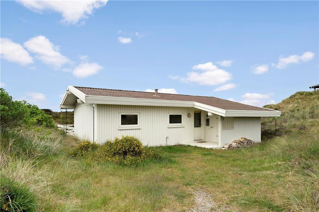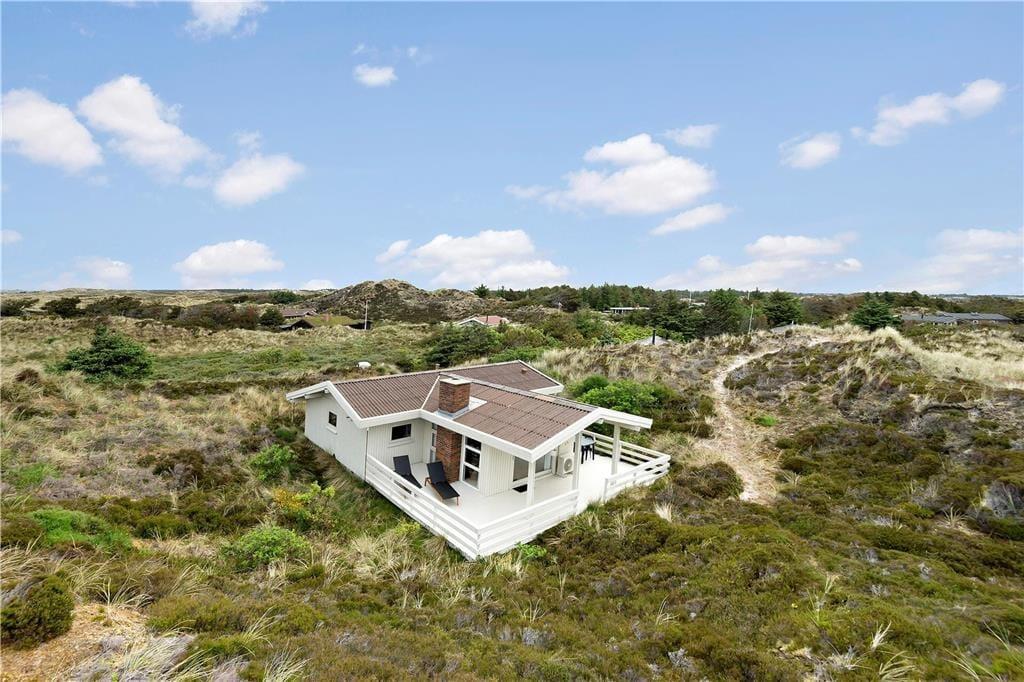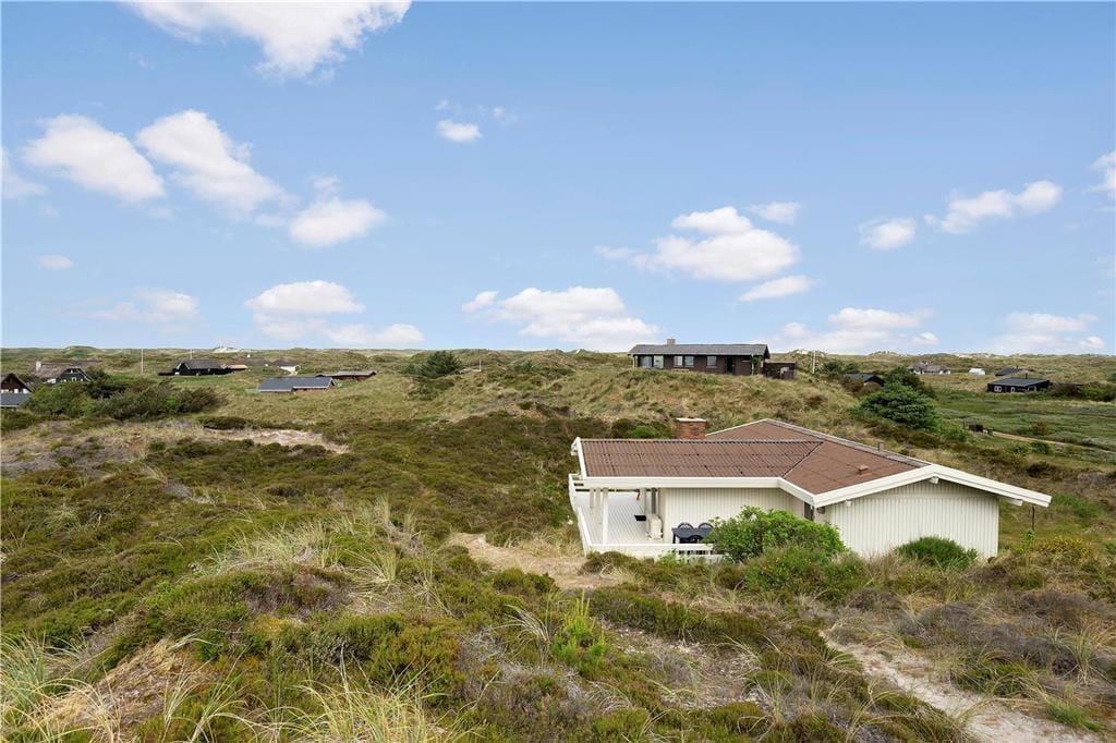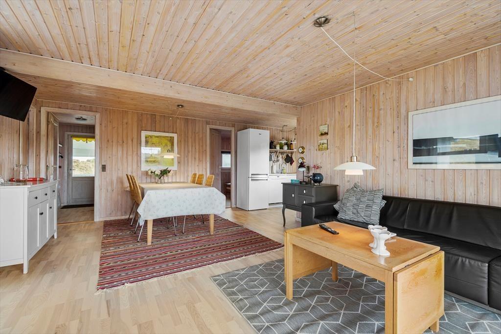 Med så smukke naturomgivelser har I et perfekt udgangspunkt for at komme ned i tempo og nyde feriedagene i ro og mag. Man kan i hvert fald hurtigt føle sig fristet til at lade tankerne vandre, når man læner sig tilbage og skuer ud over det kuperede klitlandskab – og takket være husets store vinduespartier er I stadig i kontakt med naturen, selvom den står på indendørs hygge. Afslapningsstunderne kan oplagt foregå i stuen, der er hyggeligt indrettet med brændeovn nær sofaen, spisebord og åben forbindelse til et veludstyret køkken. Et pænt badeværelse med bruseniche og vaskemaskine hører også med til planløsningen foruden tre soveværelser, der i alt kan huse fem feriegæster.