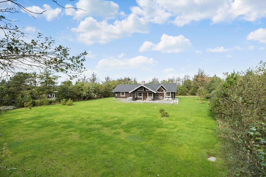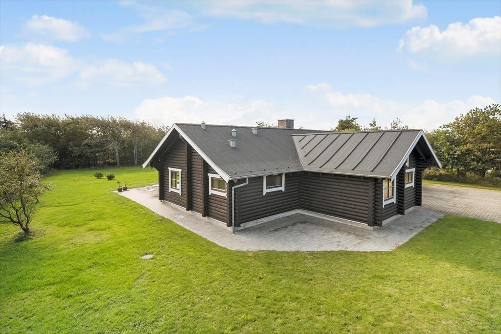 Trænger I til en dejlig ferie i stemningsfulde og naturskønne omgivelser? Så skal I endelig kigge videre på dette hyggelige bjælkehus, der ligger i det lille sommerhusområde Grærup knap 500 meter fra Vesterhavet.