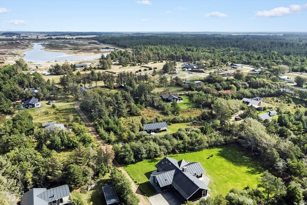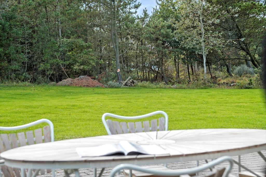 På den 1800 m2 store grund er der både carport og et flisebelagt parkeringsområde ud mod vejen. Rundt om huset er der flere terrasseområder at vælge imellem – inklusiv et overdækket areal, som hurtigt kan blive favoritpladsen om aftenen, når duggen falder, men vejret stadig er for godt til at gå helt indenfor. På den vidtstrakte græsplæne har I masser af plads til at boltre jer, og hvis I medbringer petanque eller andre havespil, kan I have en turnering kørende om at blive feriens ubestridte mester.