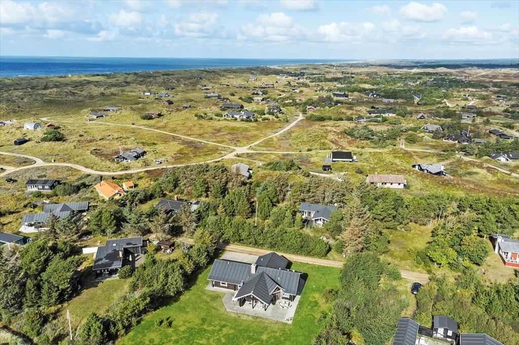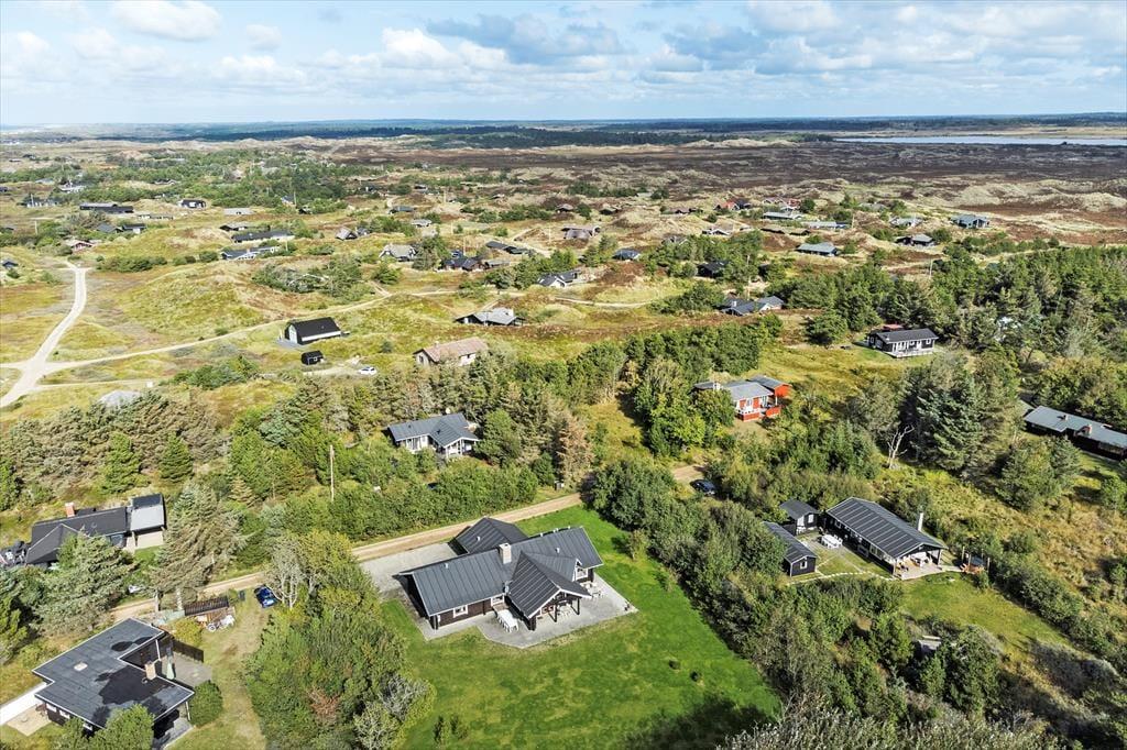 Bjælkehuset ligger roligt tilbagetrukket på den lille grusvej Søringen bare 625 meter fra Grærup Strand og Vesterhavet. Grærup er det perfekte sted, hvis I vil ned i gear og ud i naturen: Alt efter vejret og årstiden kan I smutte ned til stranden for at bade eller gå tur, og I kan også slå jer ned ved Grærup Fiskesø og se, om I får noget på krogen. På egnens vidtstrakte hedeområder er der mulighed for at se krondyrene og høre deres brøl, og i både Kjærgaard og Vejers Klitplantage er der afmærkede vandreruter. Vejers Strand og Blåvand er desuden fine udflugtsmål, hvis I er i humør til strandliv og hyggelig feriebystemning.