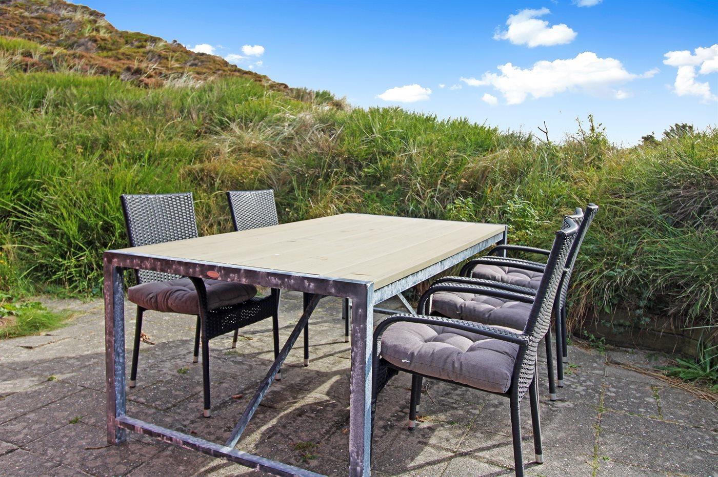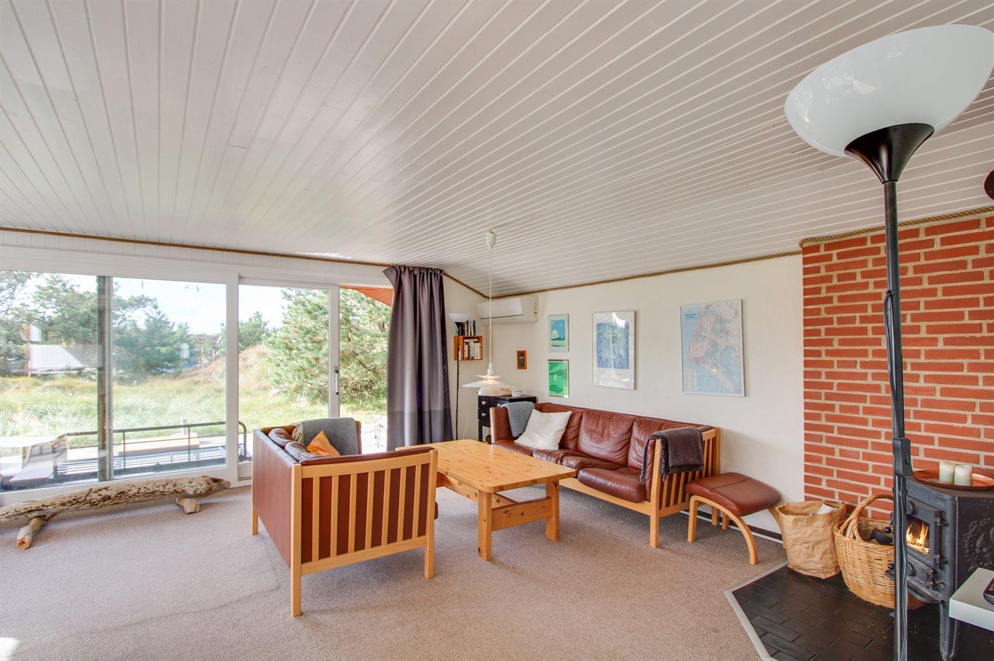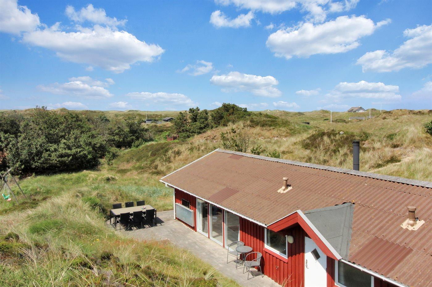 I det naturskønne ferieområde Grærup Strand med fin sandstrand, imponerende klitter, Vesterhavet og store, fredede klitarealer ligger dette sommerhus på en meget kuperet lynggrund. Fra grunden kan den smukke solnedgang over Vesterhavet nydes. Stor, åben terrasse med læfyldte solkroge. Gode fiskemuligheder i nærliggende fiskesø. Bemærk: Parkering ca. 50 m fra huset.