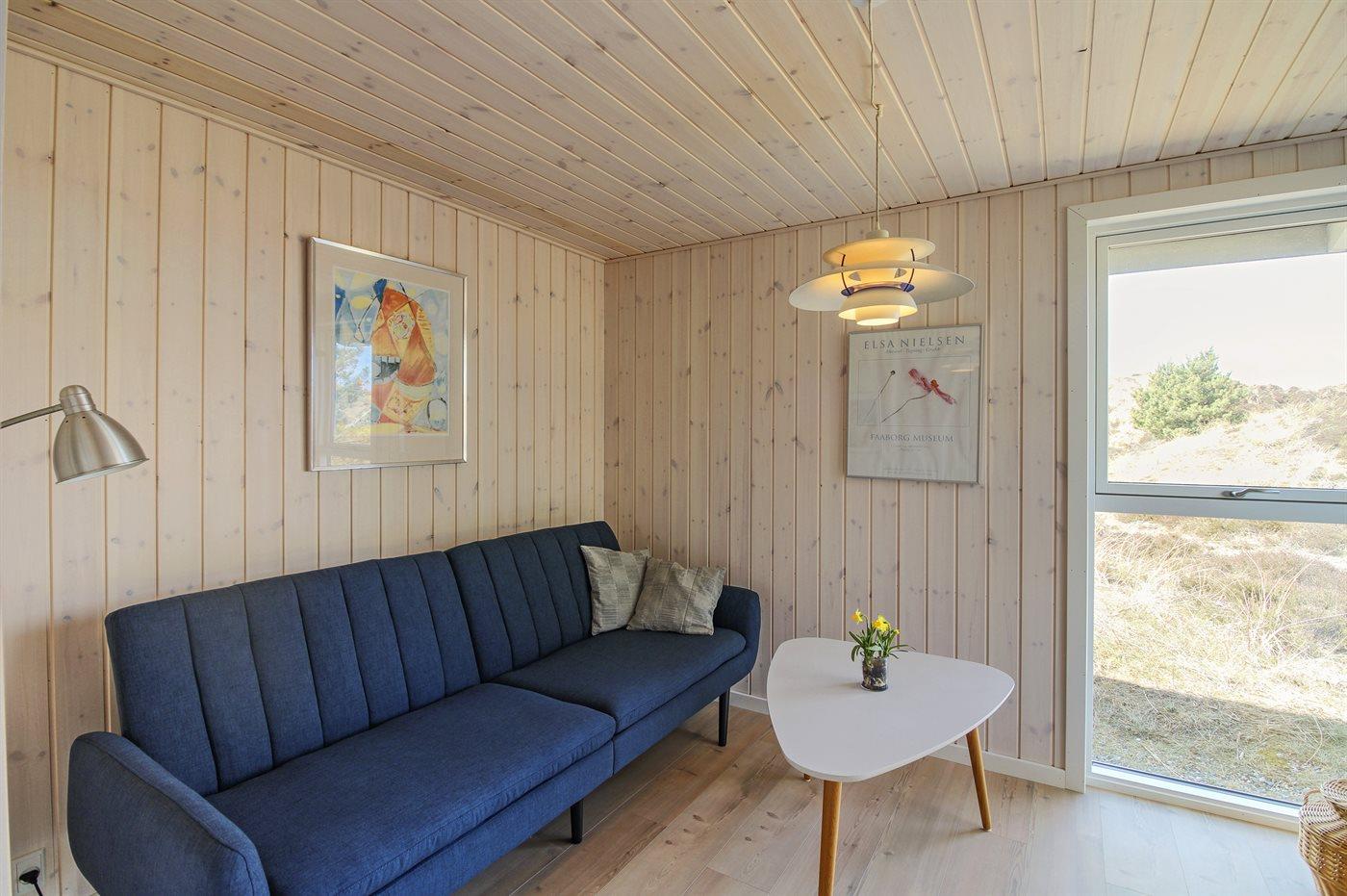 Velholdt sommerhus opført på en naturgrund med lyng og klitter. Huset ligger i en fredelig, storslået natur med store vidtstrakte hede- og skovarealer, der indbyder til vandre- og cykelture. 800 m til den pragtfulde strand ved Vesterhavet og 100 m til fredet klit- og hedeareal samt 200 m til fiskesø.