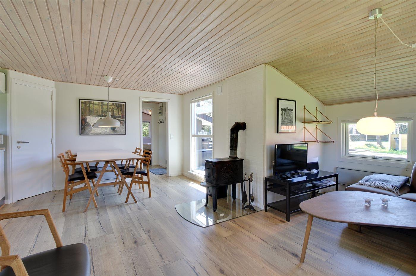 Sommerhuset egner sig til 6 personer. Ferieboligen er på 65 m² og er bygget i 1985. I 2018 gennemgik ferieboligen en renovering. Det er tilladt at medbringe 1 husdyr. Ferieboligen er udstyret med energibesparende varmepumpe. Ferieboligen har vaskemaskine. Tørretumbler. Frysekapacitet på 30 liter. Der er desuden brændeovn.
