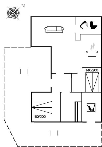 Der er i alt 3 soveværelser. Sovepladserne fordeler sig på: 4 sovepladser i dobbeltsenge. 2 sovepladser i køjeseng.