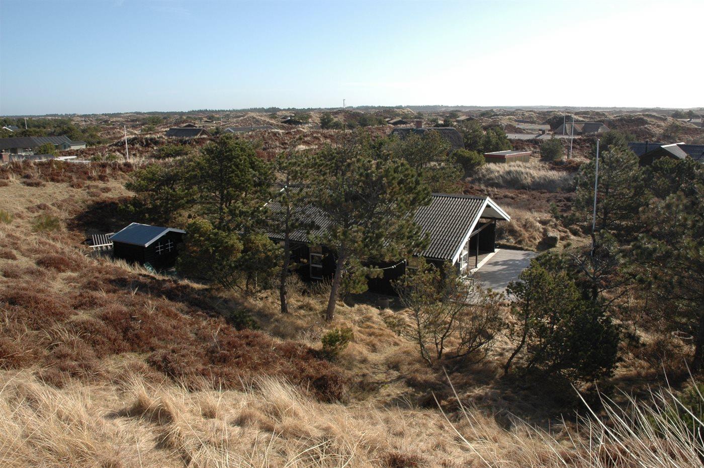 Kun 600 m fra Vesterhavet ligger dette sommerhus, på en fredlig og rolig kuperet lynggrund med gode læforhold, fra toppen af klitten kan man se Vesterhavet.