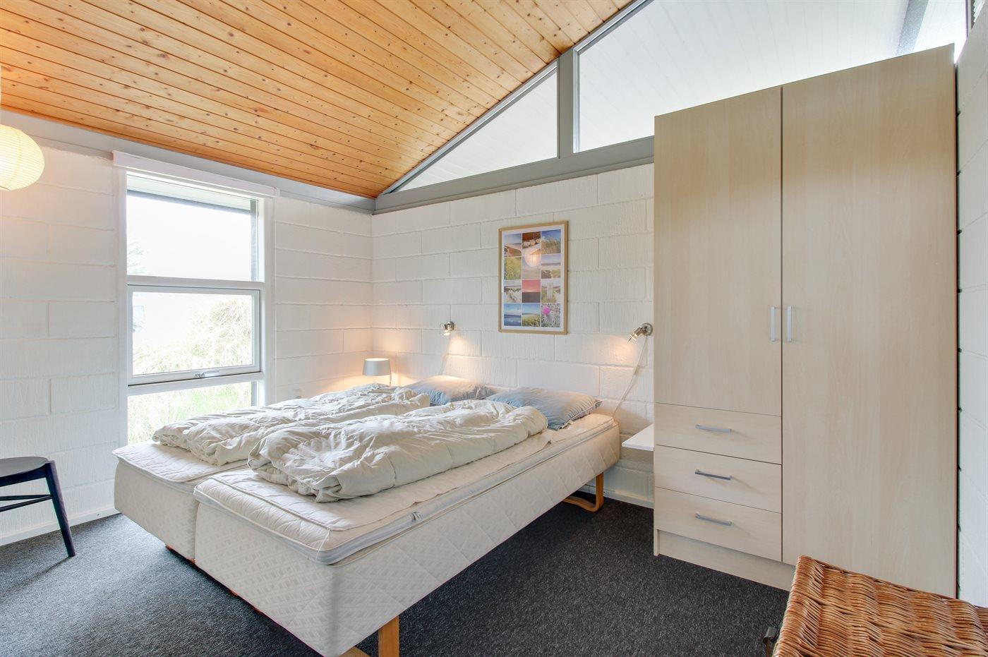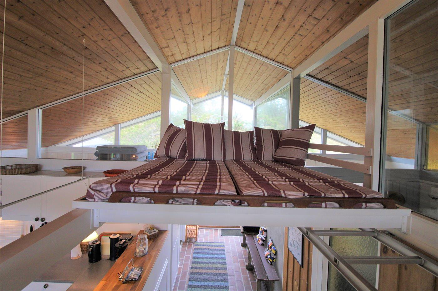 Der er i alt 3 soveværelser. Sovepladserne fordeler sig på: 4 sovepladser i dobbeltsenge. 2 sovepladser i køjeseng. Derudover er der 1 stk. barneseng.