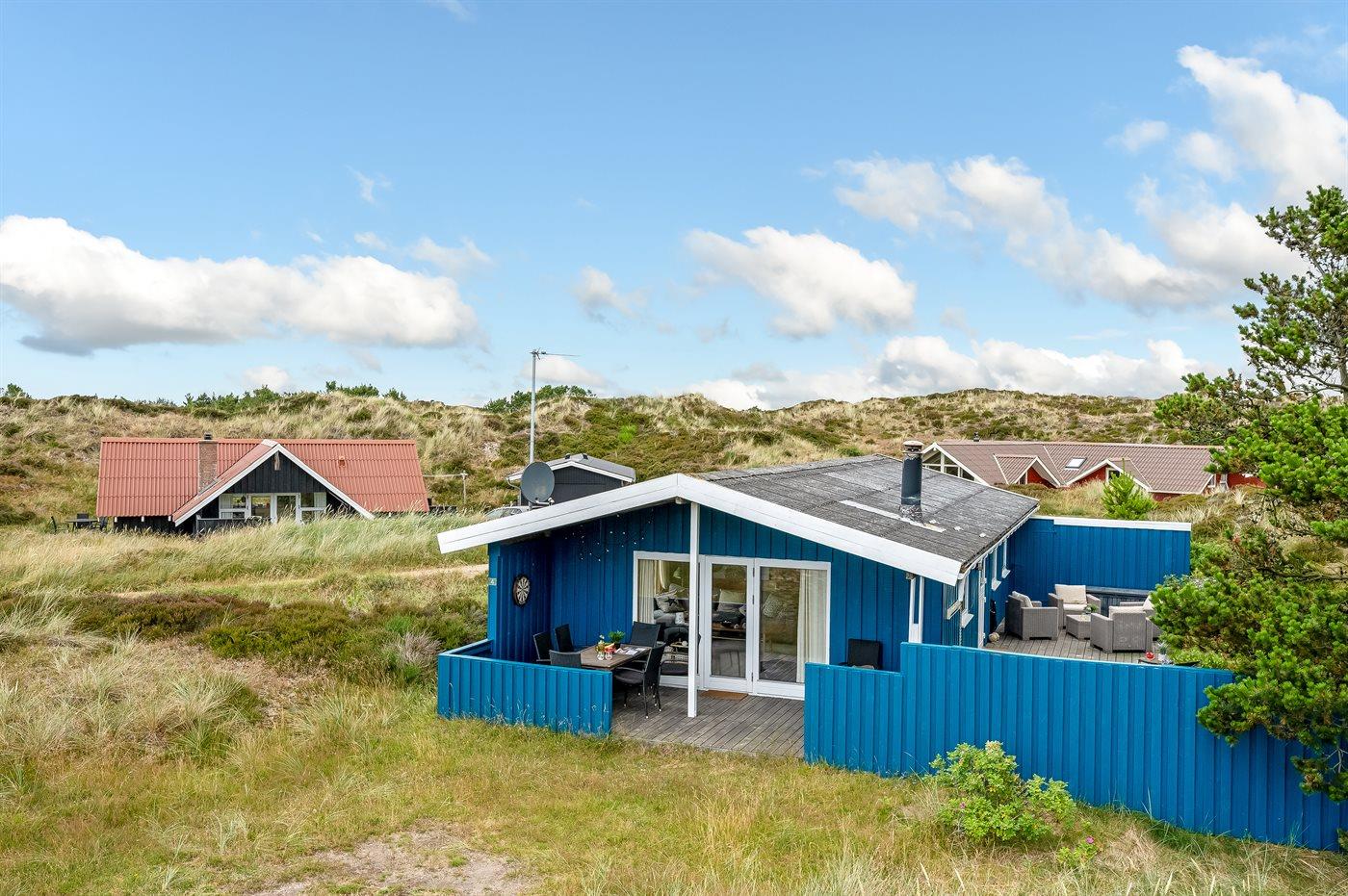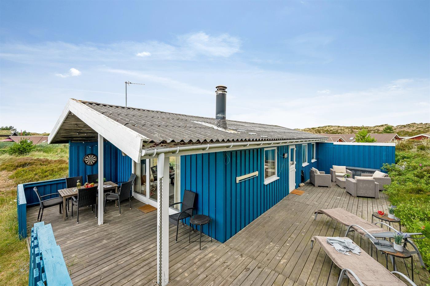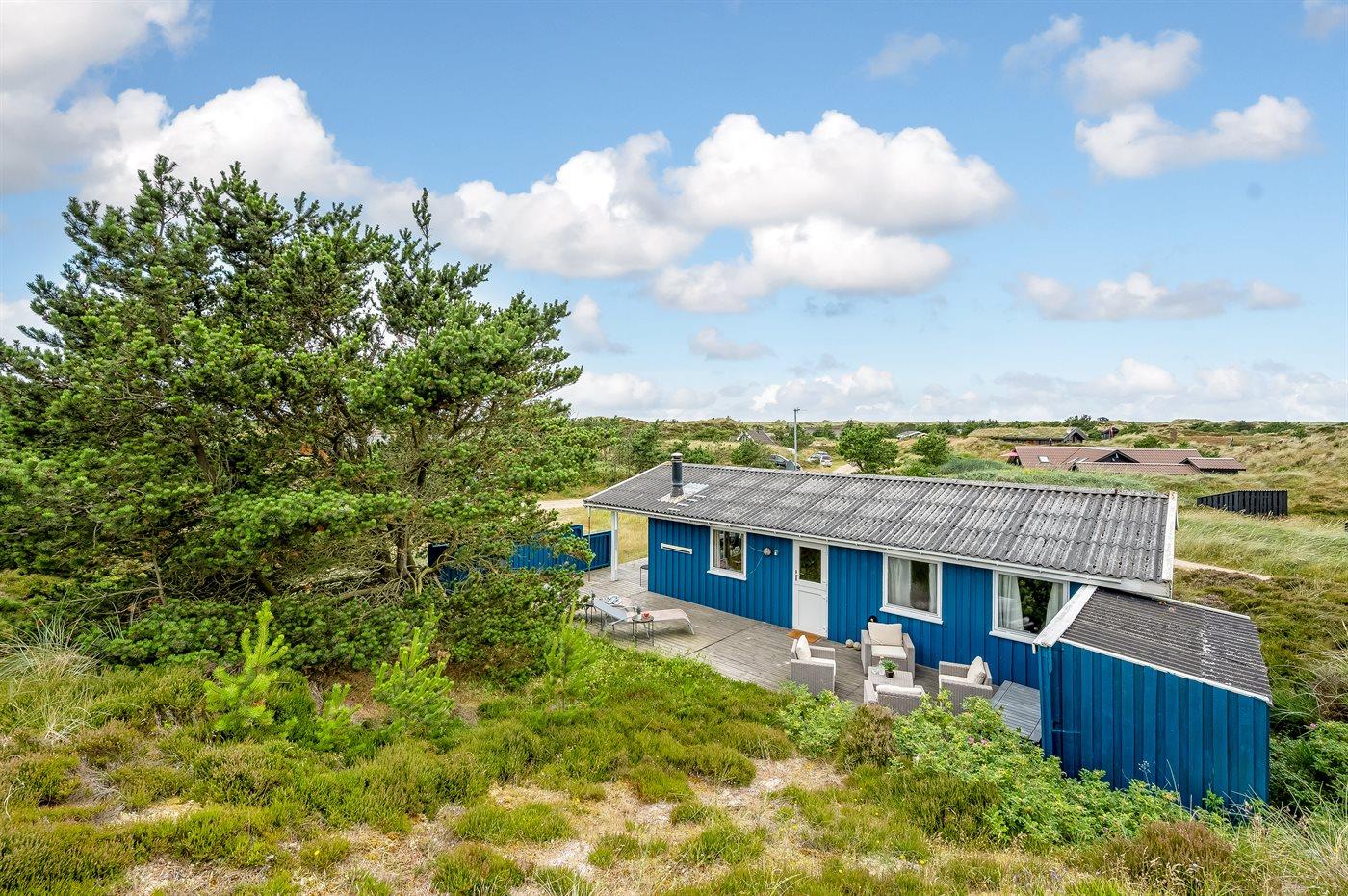 Hyggeligt feriehus i sommerhusområdet som ligger i klitterne på typisk naturgrund med højt græs. Der findes grill og havemøbler til de varme sommerdage. Fra stuen, som er hyggelig indrettet er der adgang til den overdækket terrasse.