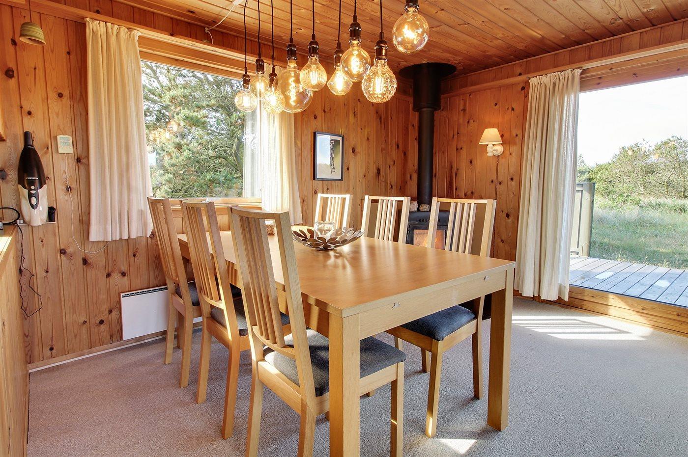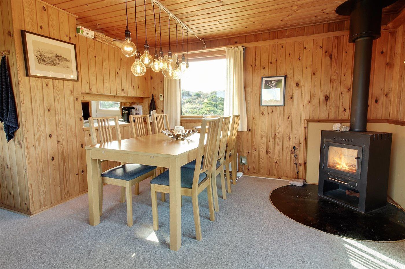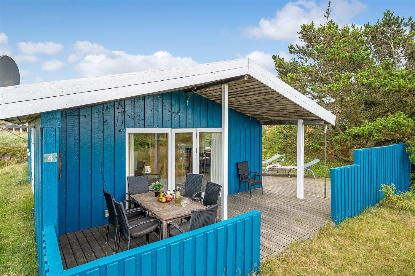 Hyggeligt feriehus i sommerhusområdet som ligger i klitterne på typisk naturgrund med højt græs. Der findes grill og havemøbler til de varme sommerdage. Fra stuen, som er hyggelig indrettet er der adgang til den overdækket terrasse.