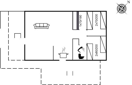 Sommerhuset egner sig til 6 personer. 2 af sovepladserne er kun egnet til større børn (4-11 år). Ferieboligen er på 60 m² og er bygget i 1988. Det er ikke tilladt at medbringe husdyr. Frysekapacitet på 10 liter. Der er desuden brændeovn. Til de små er der 1 stk. barnestol.