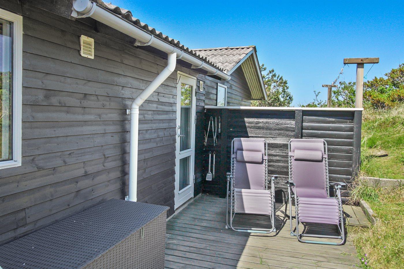 Ferieboligen er beliggende på en 1675 m² stor naturgrund. Der er 400 m til havet. Nærmeste forretning er beliggende i en afstand af 3500 m. Til ferieboligen hører 20 m² terrasseareal. Der er redskabsrum. Gynge. Sandkasse. Grill til rådighed. Parkering ved ferieboligen.