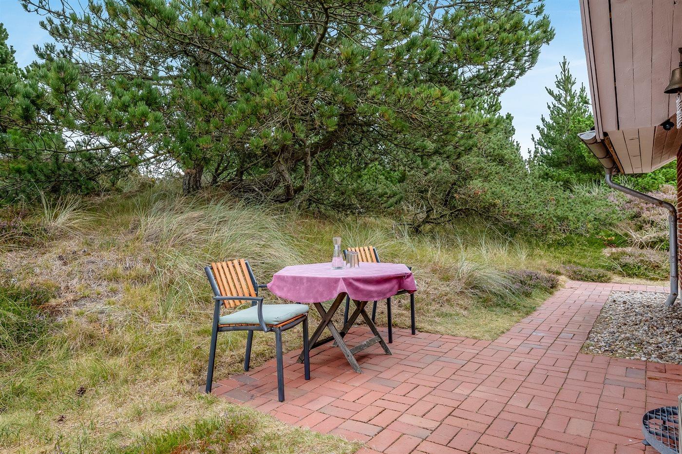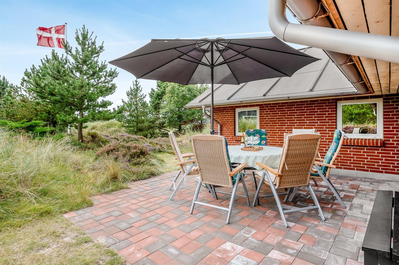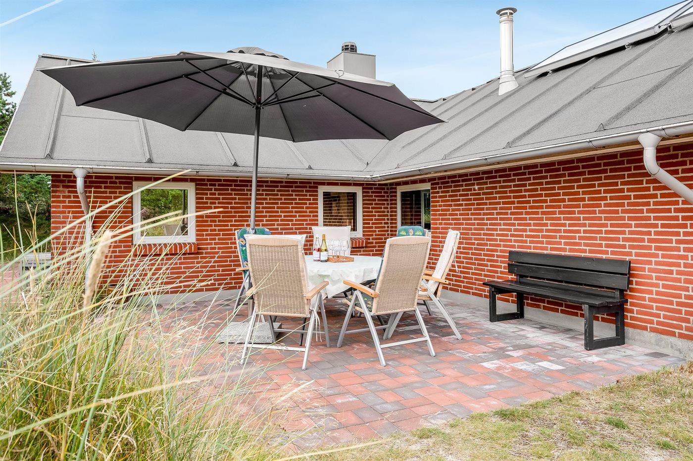 Ved huset forefindes brændedepot, grilludstyr og havemøbler. Terrassemøblerne består af borde, stole, bænke og parasoller samt solvogne. Udendørs forefindes tørresnor samt en termostatstyret vandhane.