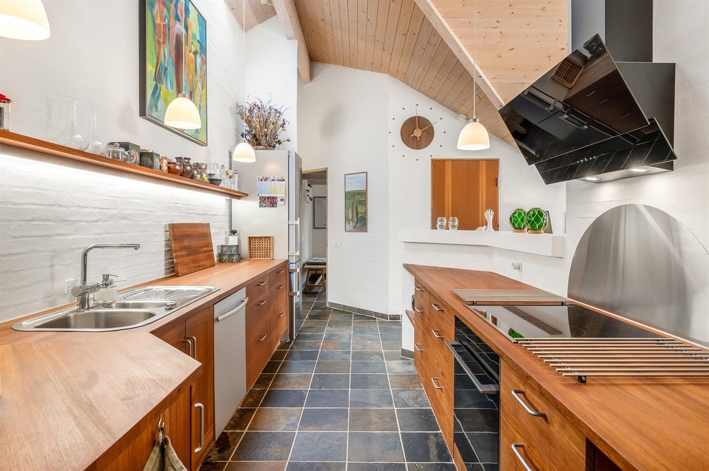 Køkkenet er indrettet praktisk med masser af plads og står i åben forbindelse med stuen.