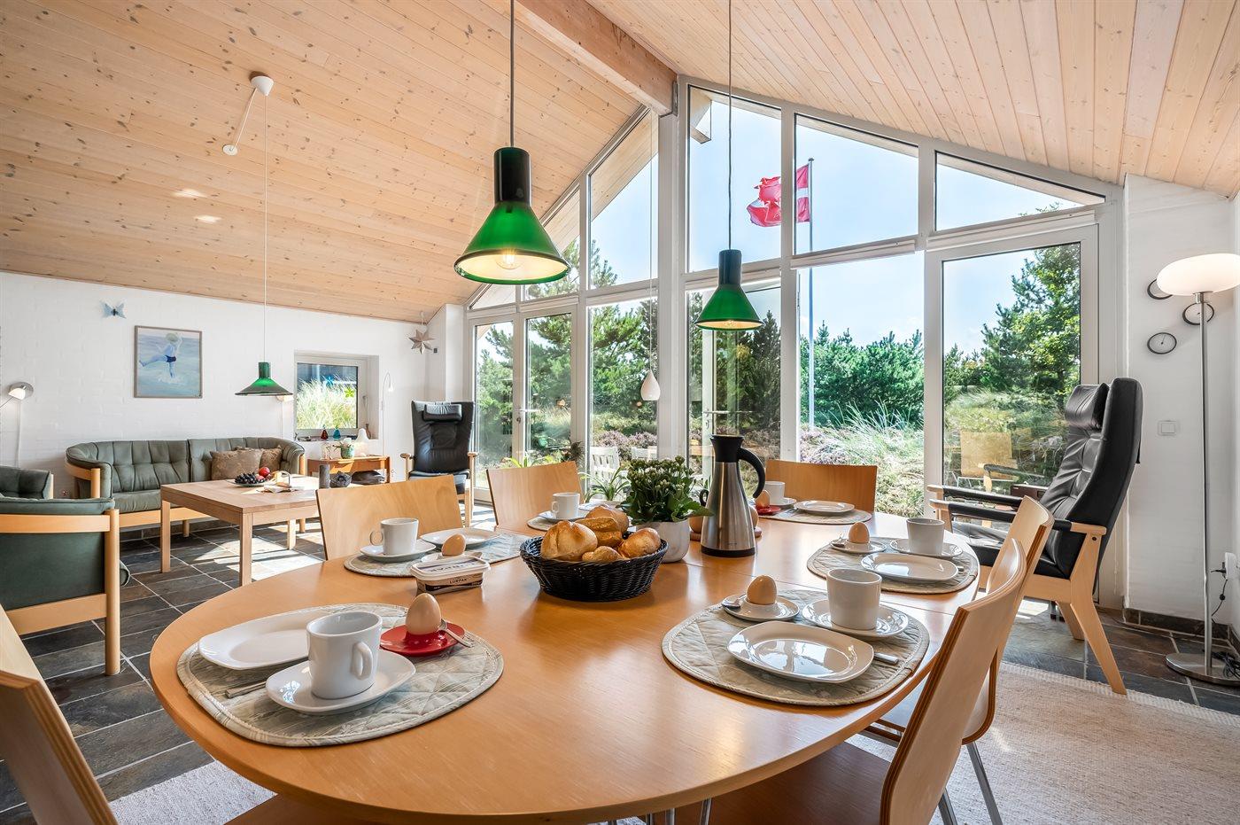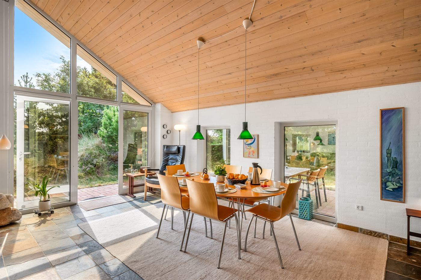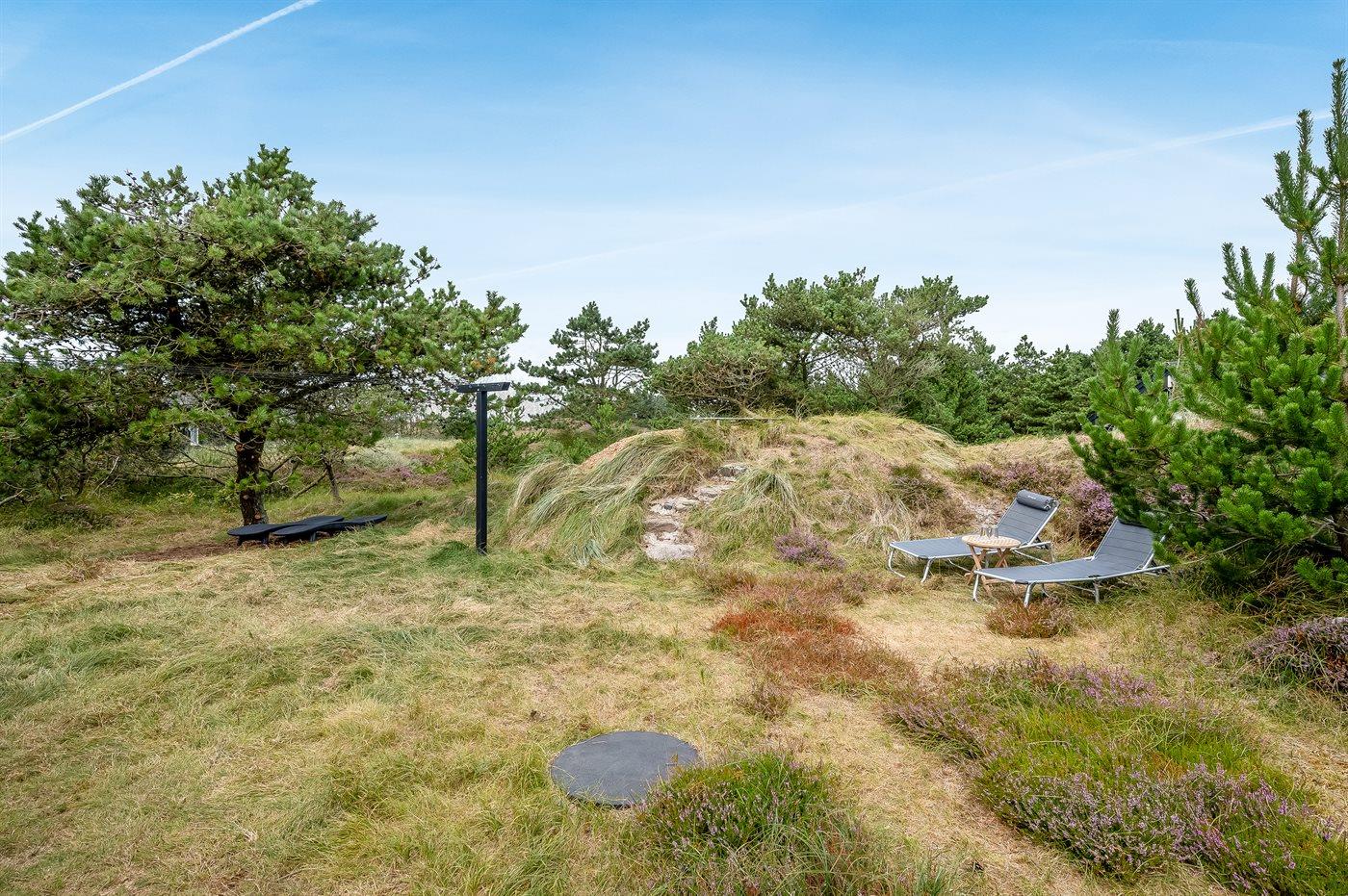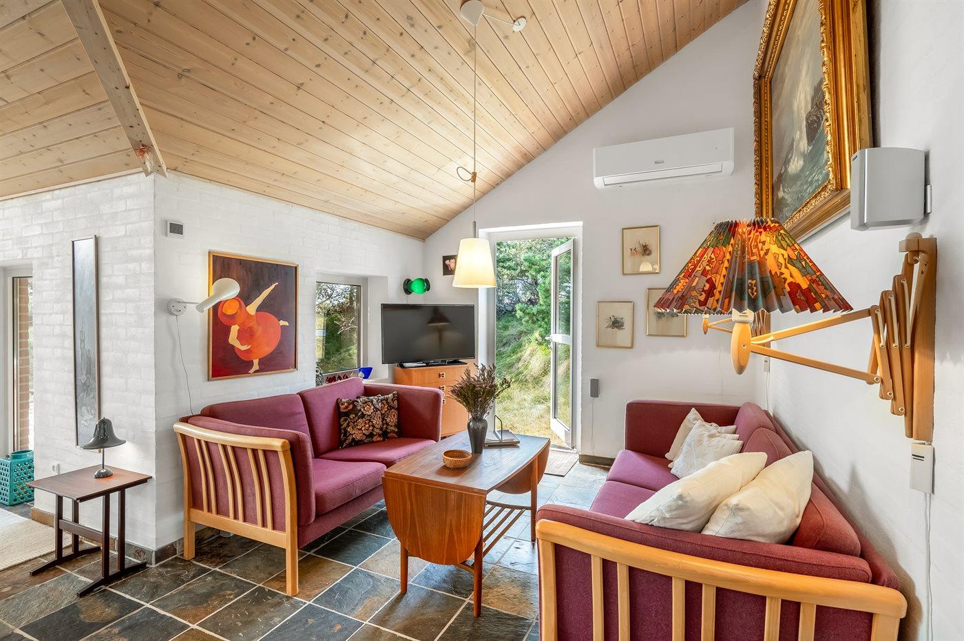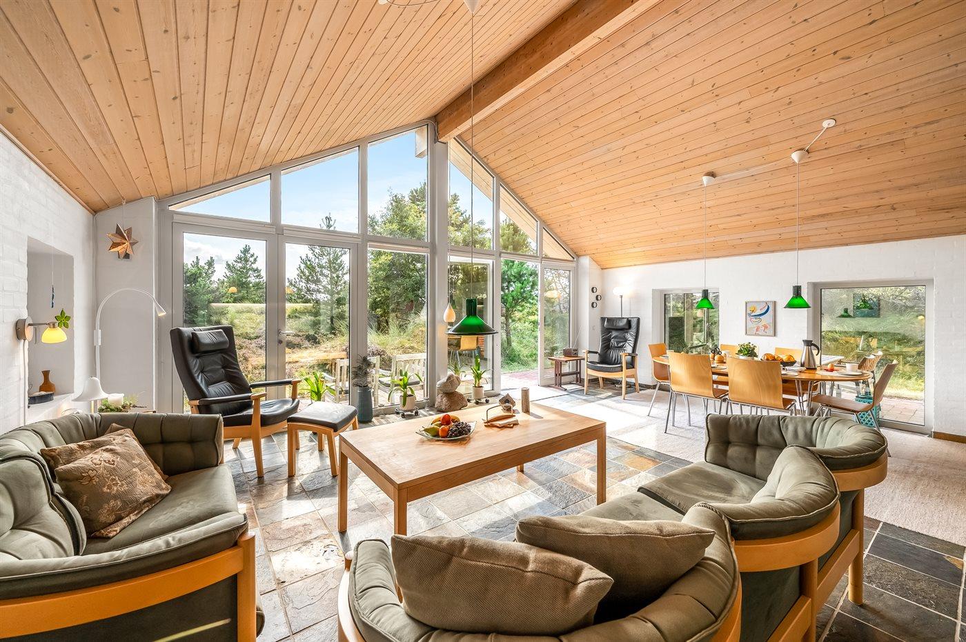 Huset ligger i et fredeligt område, der er kendt for sin storslåede natur med kuperet klitlandskab, kronvildt og Vesterhavet. Midt i dette område finder du denne unikke perle, en vidunderlig feriebolig, der emmer af fred og ro. Dette særlige smukke og meget smagfuldt indrettede hus ligger på en stor naturgrund. Her har husets ejer formået at skabe et helt igennem fantastisk åndehul. Selve grunden er smuk, kuperet og ugeneret, hvor kronvildtet kan gemme sig mellem fyrretræerne - helt i tråd med resten af området.