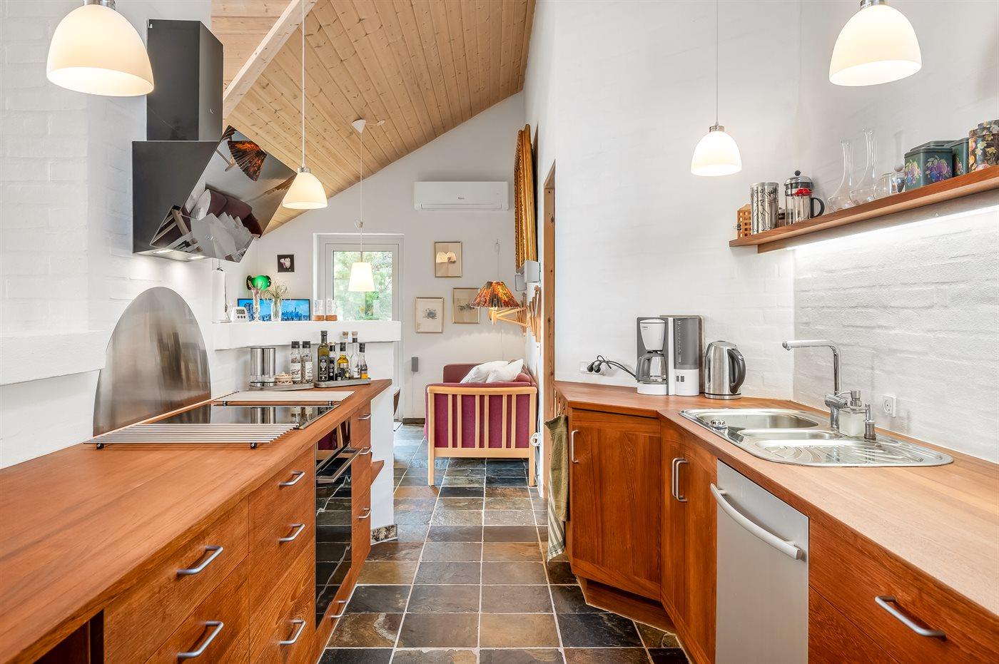 Køkkenet er udstyret med 1 køle/fryseskab (259/104 liter) Der er 4 el kogeplader, emhætte, varmluftovn, mikrobølgeovn samt opvaskemaskine. Desuden elkoger, kaffemaskine, brødrister samt håndmixer.