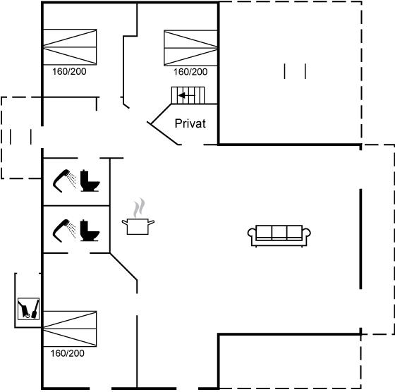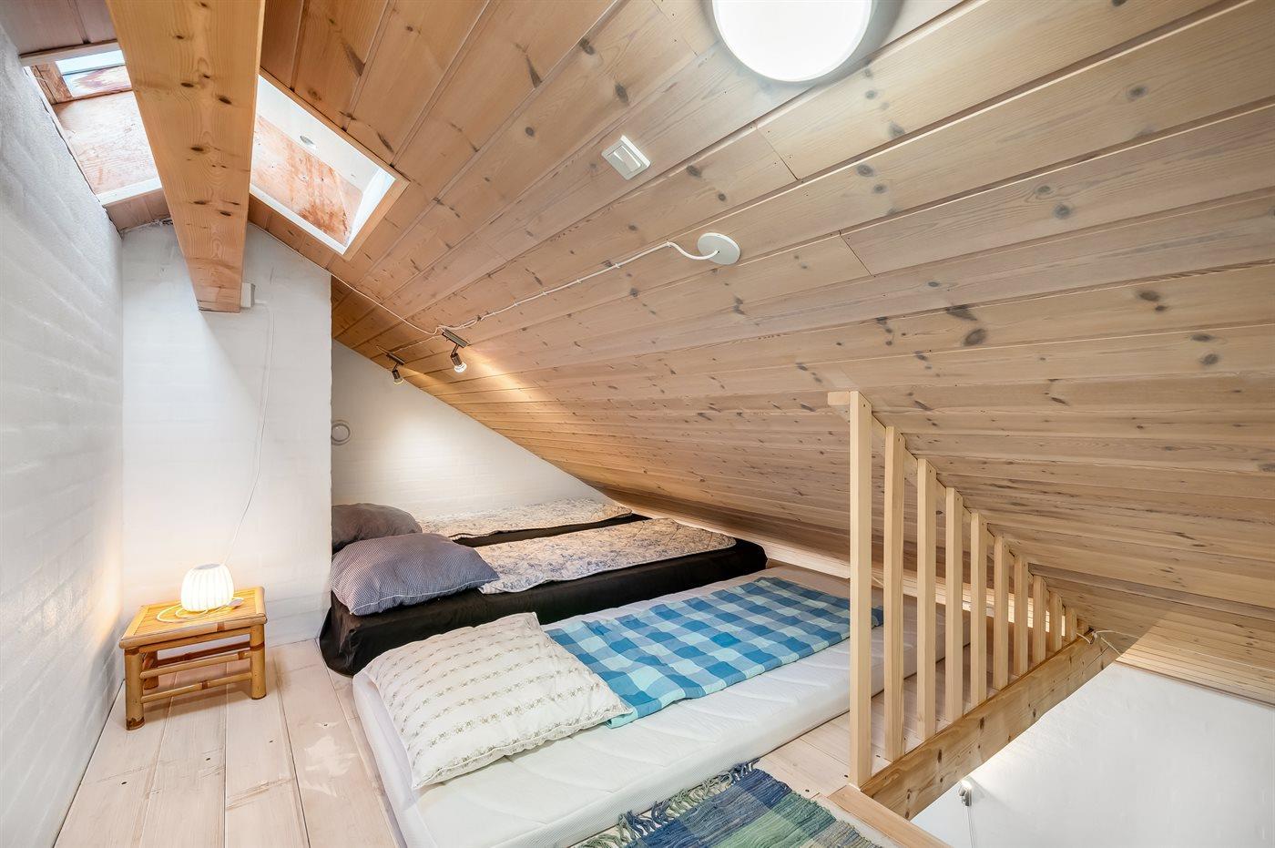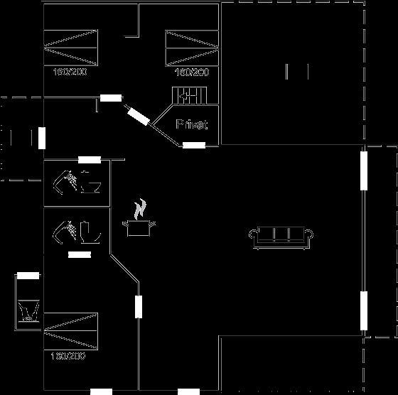 Et forældre/børneværelse med hems med tilhørende løse madrasser (200x80). Et soveværelse hvor sengene nemt kan ændres til 2 adskilte sovepladser.