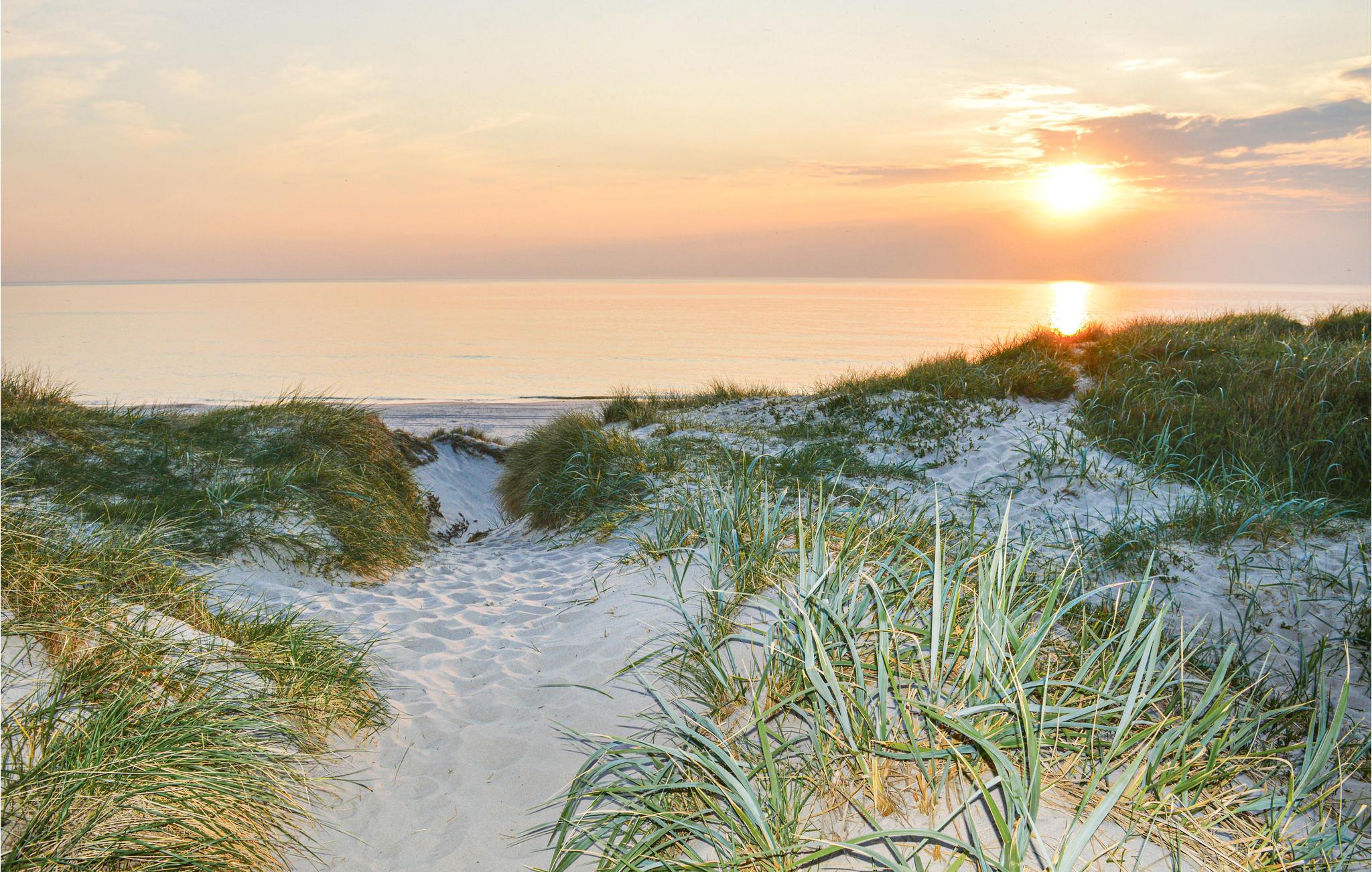 Et hyggeligt feriehus med en enkel indretning, beliggende midt i det flotte og skønne område ved Grærup Strand, og med gåafstand til én af vestkystens gode strande. Feriehuset er indrettet i en meget autentisk retro stil. Den delvis overdækkede terrasse er sydvendt, og der er gode muligheder for at finde læ på den store, kuperede og ugenerte naturgrund, der er fyldt med lyngplanter. Ved solnedgang kan I opleve de smukkeste farver på himlen inden solen går ned i havet. I bor ikke langt fra Grærup Fiskesø, hvor I kan være heldige at fange aftensmaden.
