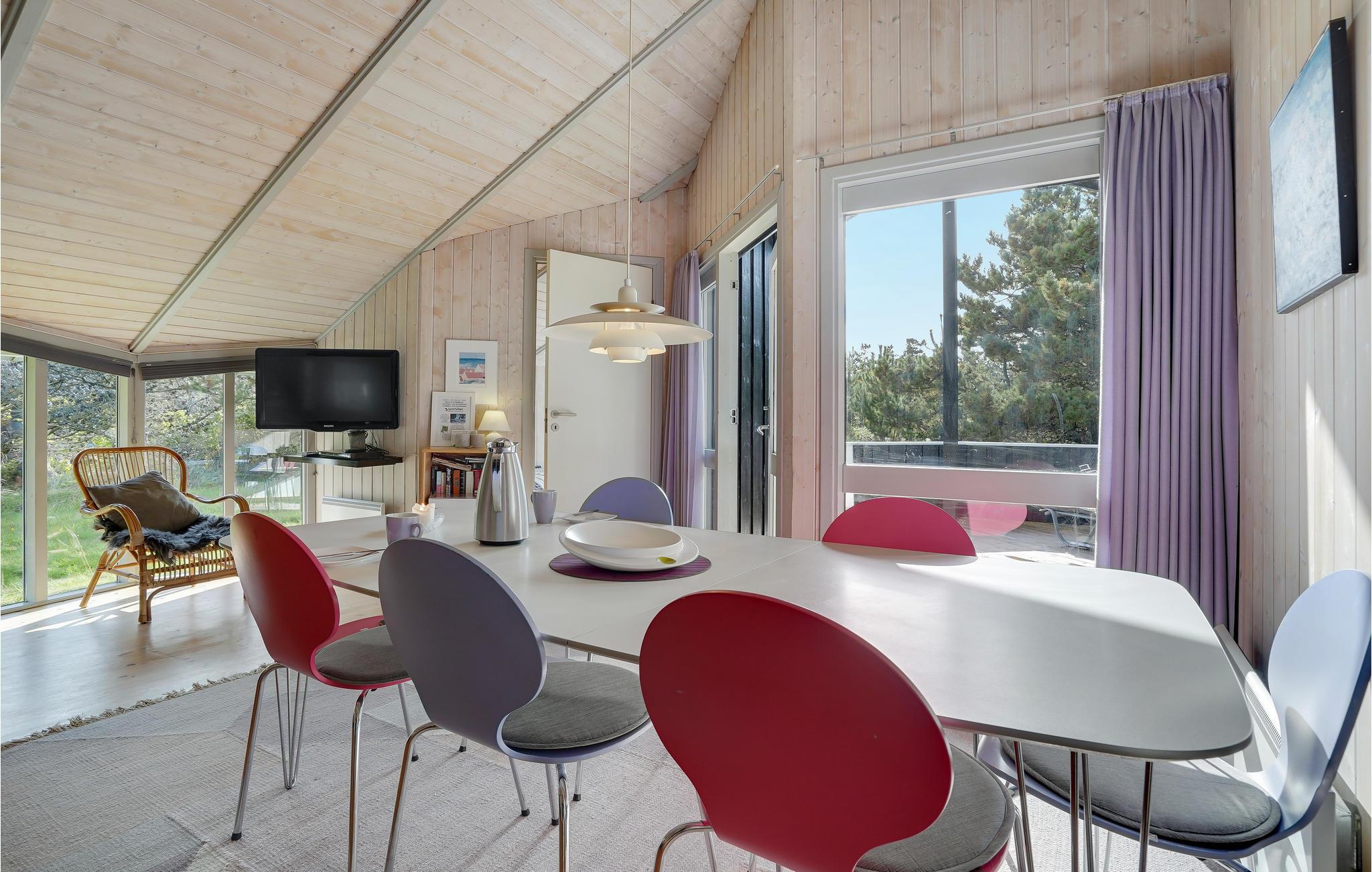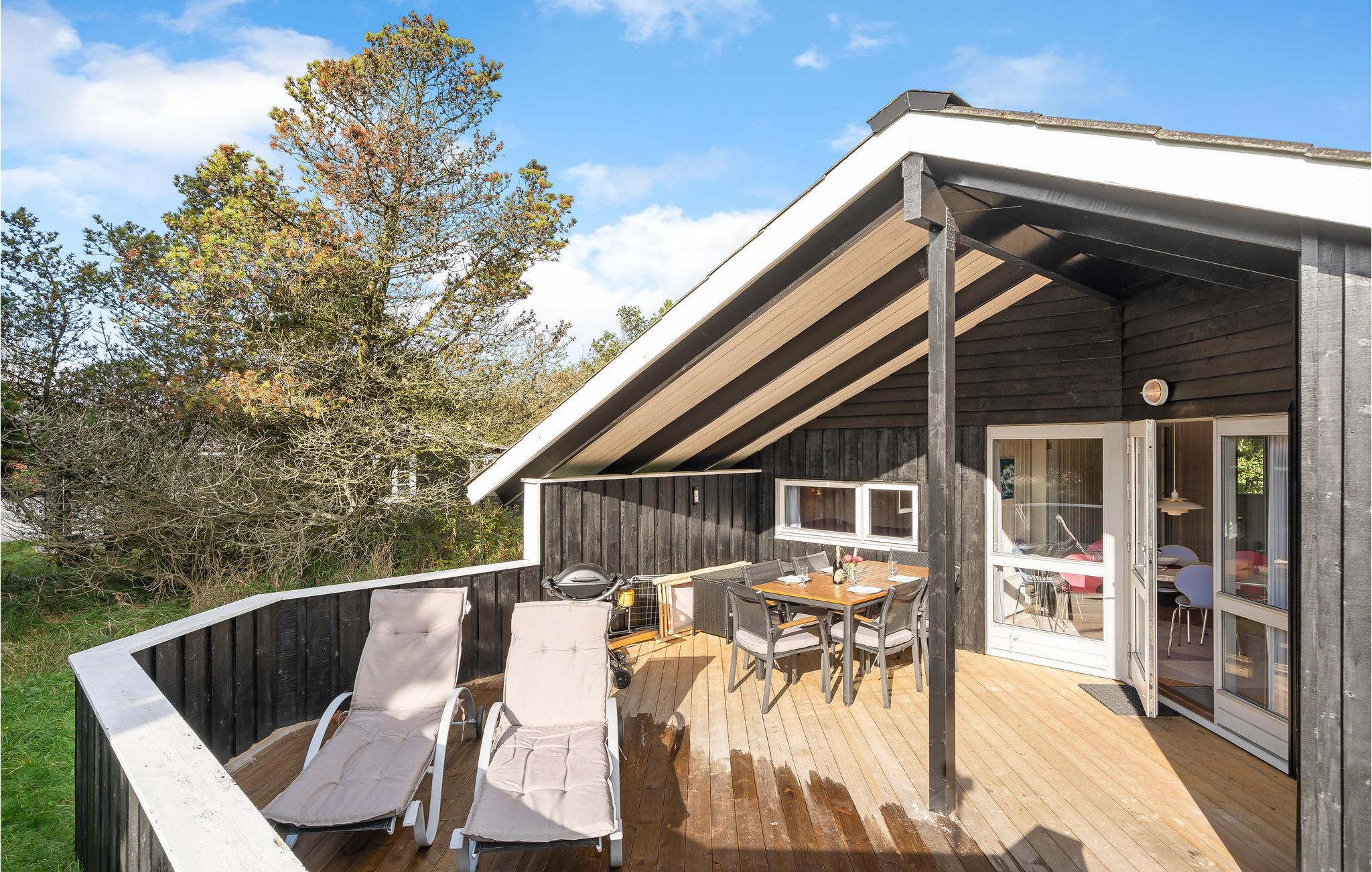 Dette dejlige og rigtig hyggelige feriehus ligger i et naturskønt område i gåafstand til stranden. I huset er der lagt vægt på, at hele familien kan holde ferie i dejlige omgivelser. Huset indeholder blandt andet et dejligt badeværelse, der er udstyret med en to-pers. spa og har adgang til saunaen. Her kan I slappe af efter en dejlig spadseretur langs vandet. Eller I kan nyde varmen fra den lune brændeovn, der står i stuen. Fra køkken/alrummet er der direkte udgang til en delvis overdækket terrasse. Ikke langt fra huset ligger en hundeskov samt en skovlegeplads. Der er gåafstand til en put and take fiskesø, samt et utal af vandre- og cykelstier i området.