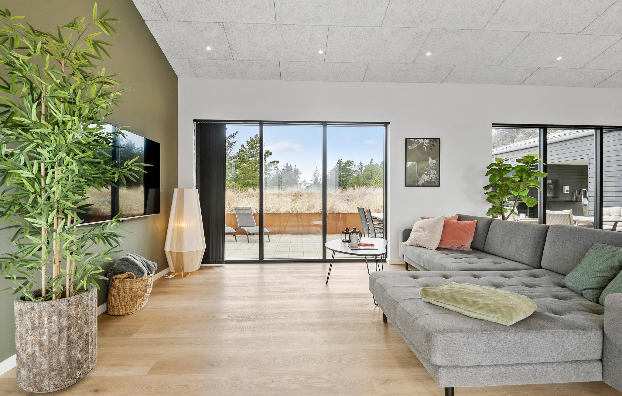Træd ud på den store, møblerede terrasse, og start dagen med morgenmad i det fri. Slap af i de behagelige loungemøbler, eller nyd et glas vin i aftensolen efter en oplevelsesrig dag. Udendørsområdet fuldendes af et skønt udendørs spabad. Nyd et varmt bad under åben himmel, omgivet af klitter og natur. Terrassen er omgivet af beskyttende marehalm og byder på masser af privatliv.