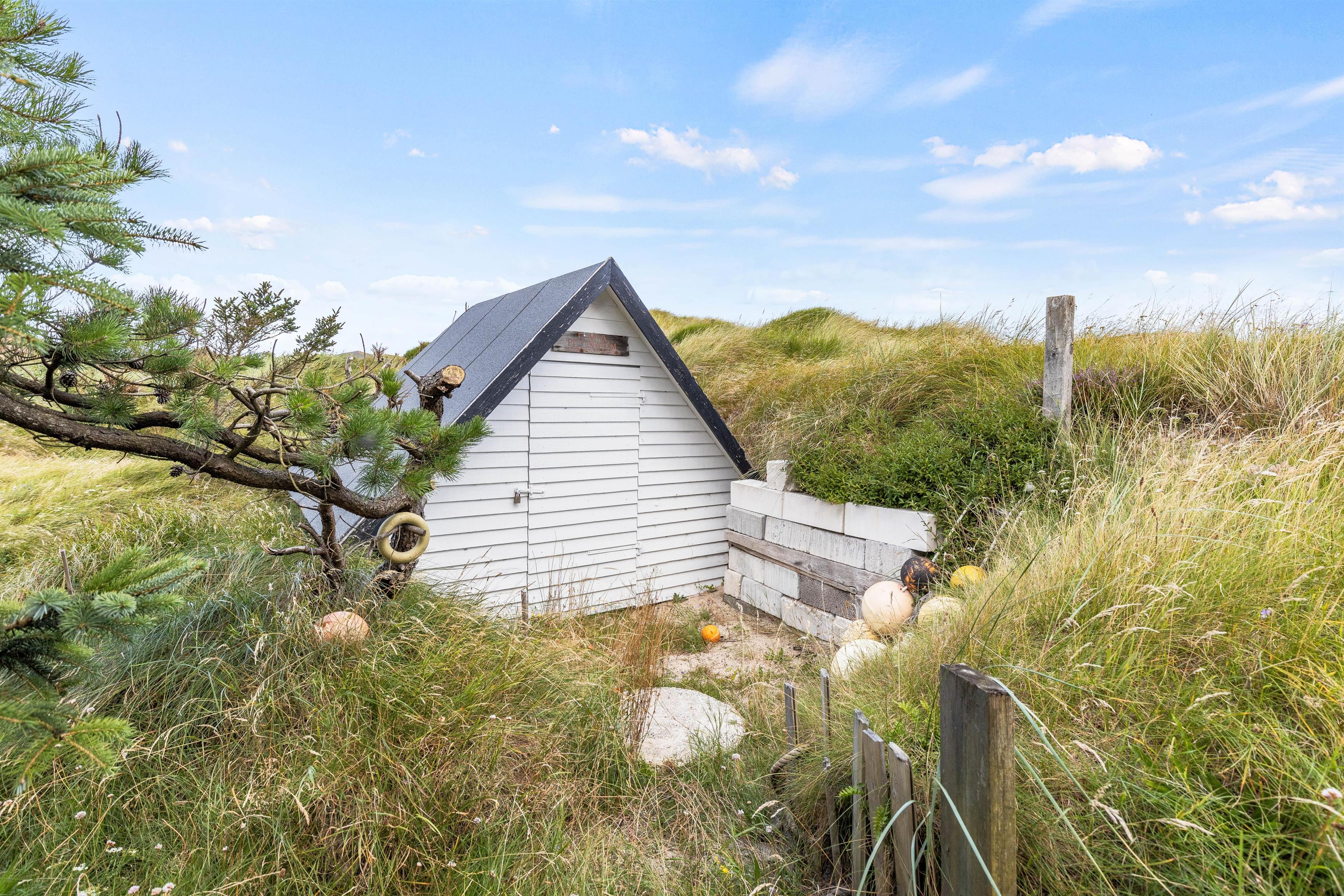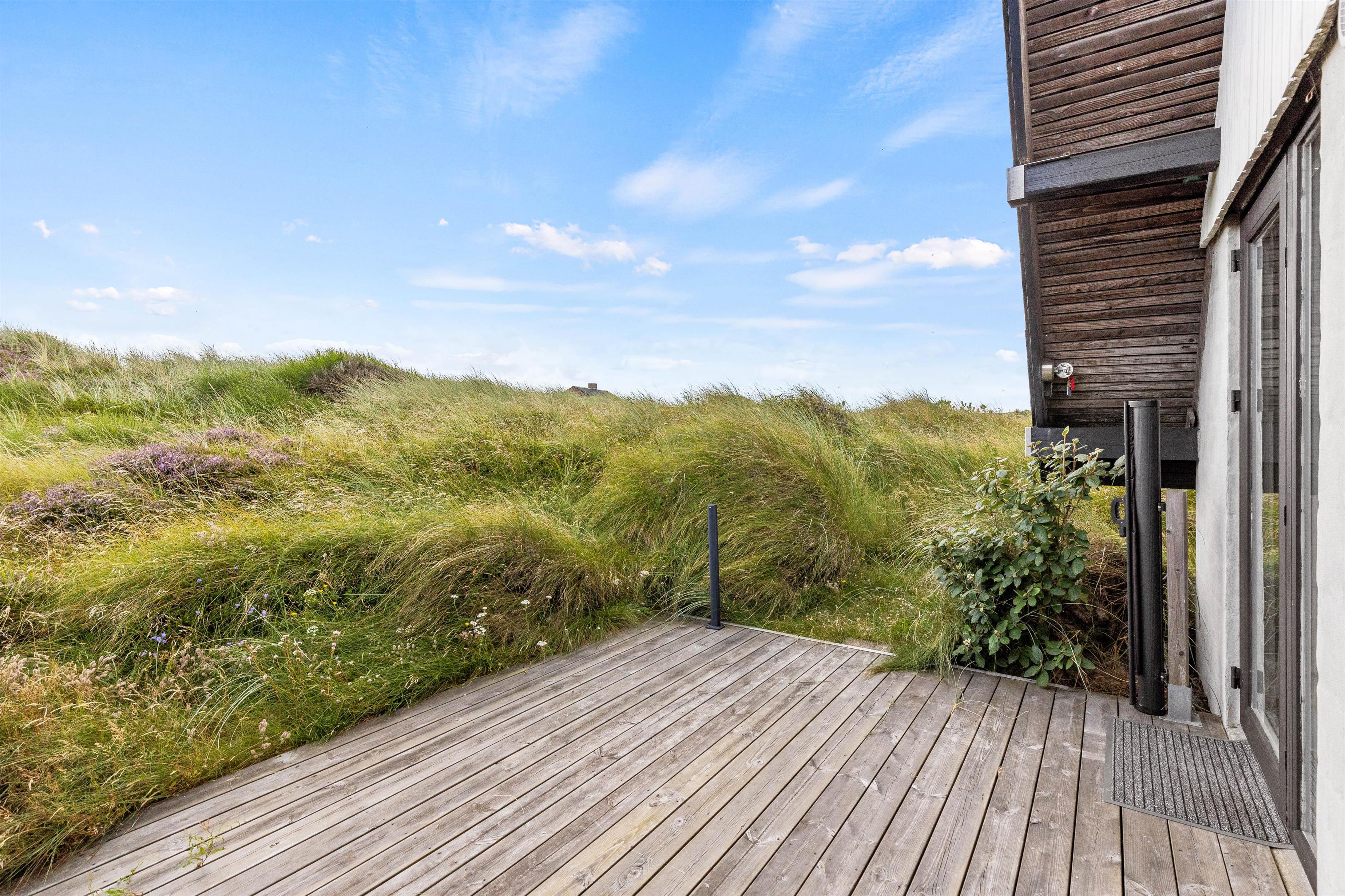 Næsten lige uden for døren finder du en sti, som fører dig gennem klitterne ned til havet, og mens du sidder på den terrassen og nyder solens lune, bruser bølgerne sagte i baggrunden. Her får du en helt særlig beliggenhed, som inviterer til afslappende gåture langs vandet, forfriskende dukkerter og synet af betagende solnedgange fra klittoppen.