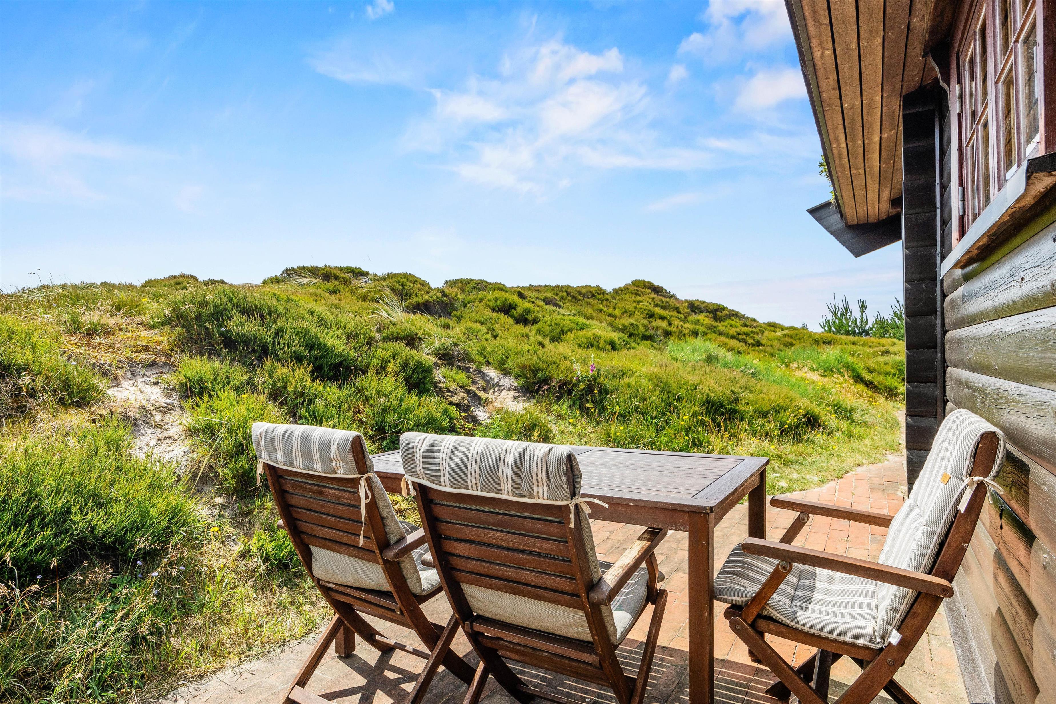 Nyd ferien i naturskønne Grærup Strand i dette charmerende sommerhus til 4 personer, som ligger fredeligt placeret på Bjørnedalen 12 – kun 600 meter fra sandstranden og det brusende Vesterhav. Her bor I midt i naturen på en fin grund, hvor rådyr og fugleliv ofte kigger forbi. Sommerhuset byder på ægte sommerhusstemning og skaber ideelle rammer for en afslappende ferie tæt på både hav og hede.