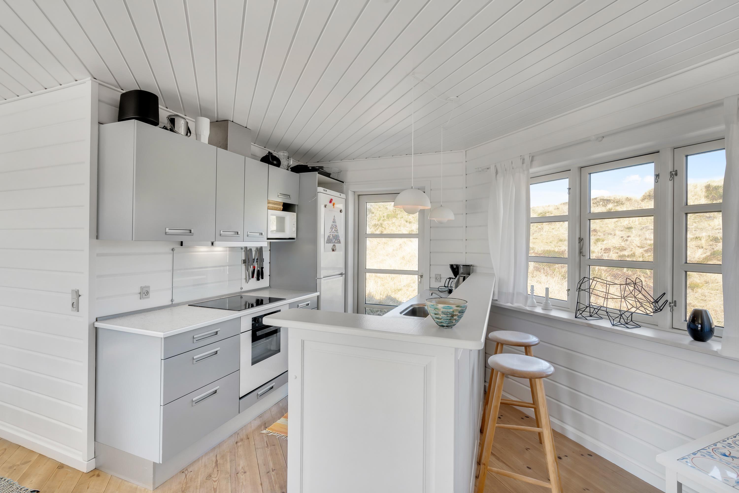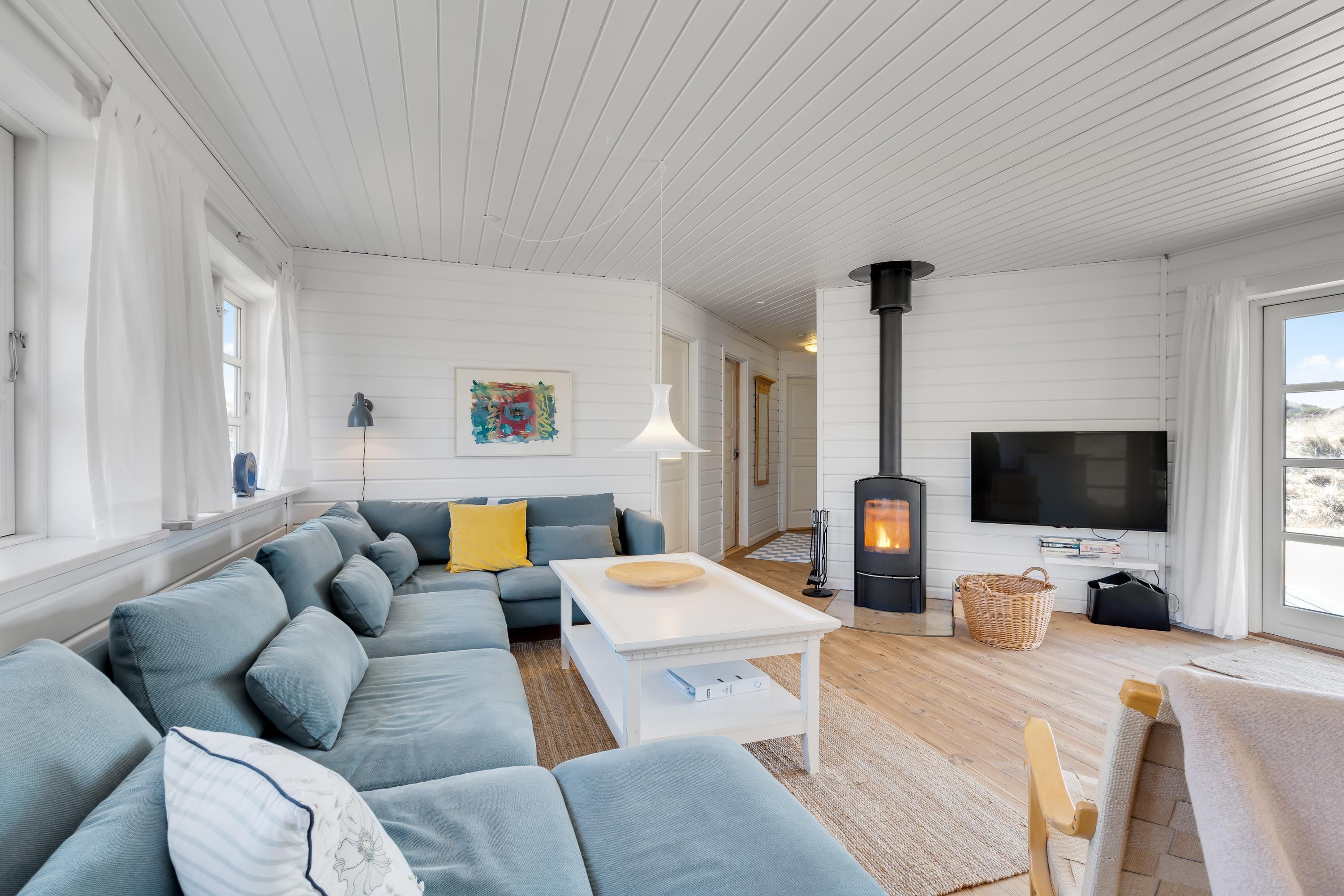 I det åbne opholdsrum er køkken og stue slået sammen, og her kan hele familien samles til lækre middage, hyggelige filmaftener ved smart tv´et og kortspil og kakao på kølige dage. Brændeovnen sørger for, at I kan holde jer dejlig varme hele året rundt.