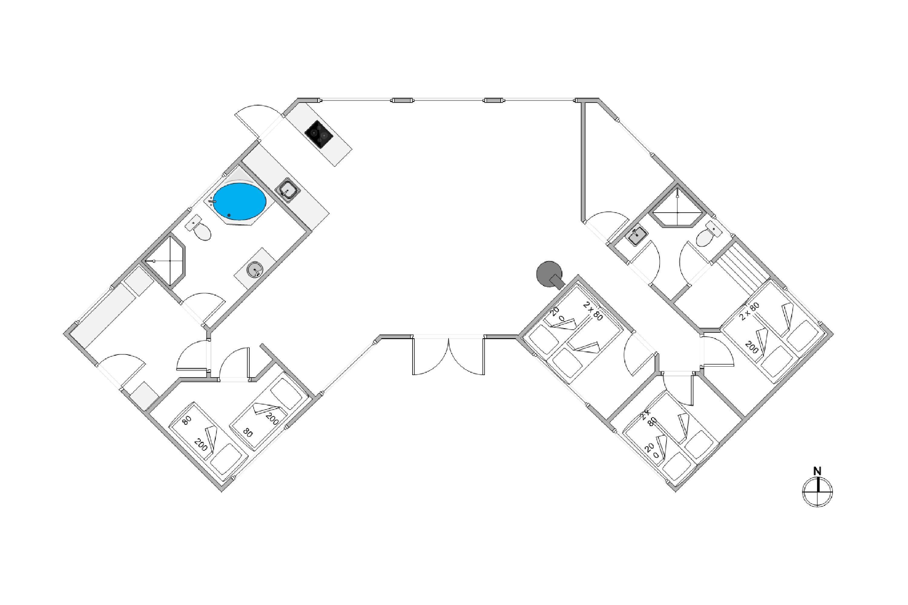Det ene af husets 2 badeværelser byder på lækre wellness-overraskelser. Her har I nemlig adgang til jeres egen sauna og spa, så I kan forkæle jer selv lidt ekstra, når børnene er blevet puttet, og aftenen går på hæld.