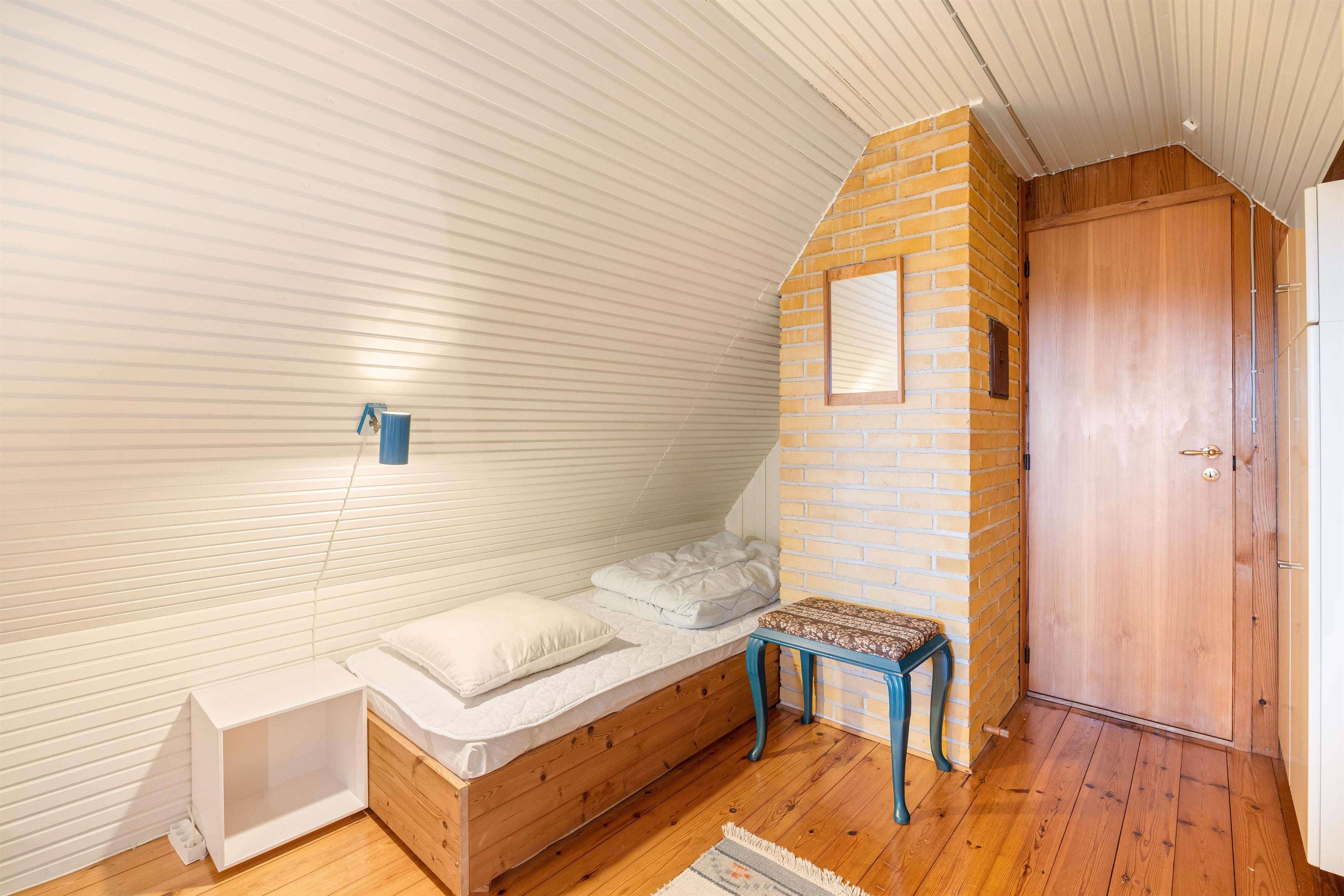 Feriehusets 2 soverum befinder sig på første sal, hvor det ene er indrettet med en 140x200cm dobbeltseng, mens det andet har en 160x200 cm dobbeltseng samt en enkeltseng. Udover dette, byder feriehuset på et lyst og rummeligt badeværelse med bruseniche og vaskemaskine. Her er der også gulvvarme, så I ikke får kolde fødder i vintermånederne.