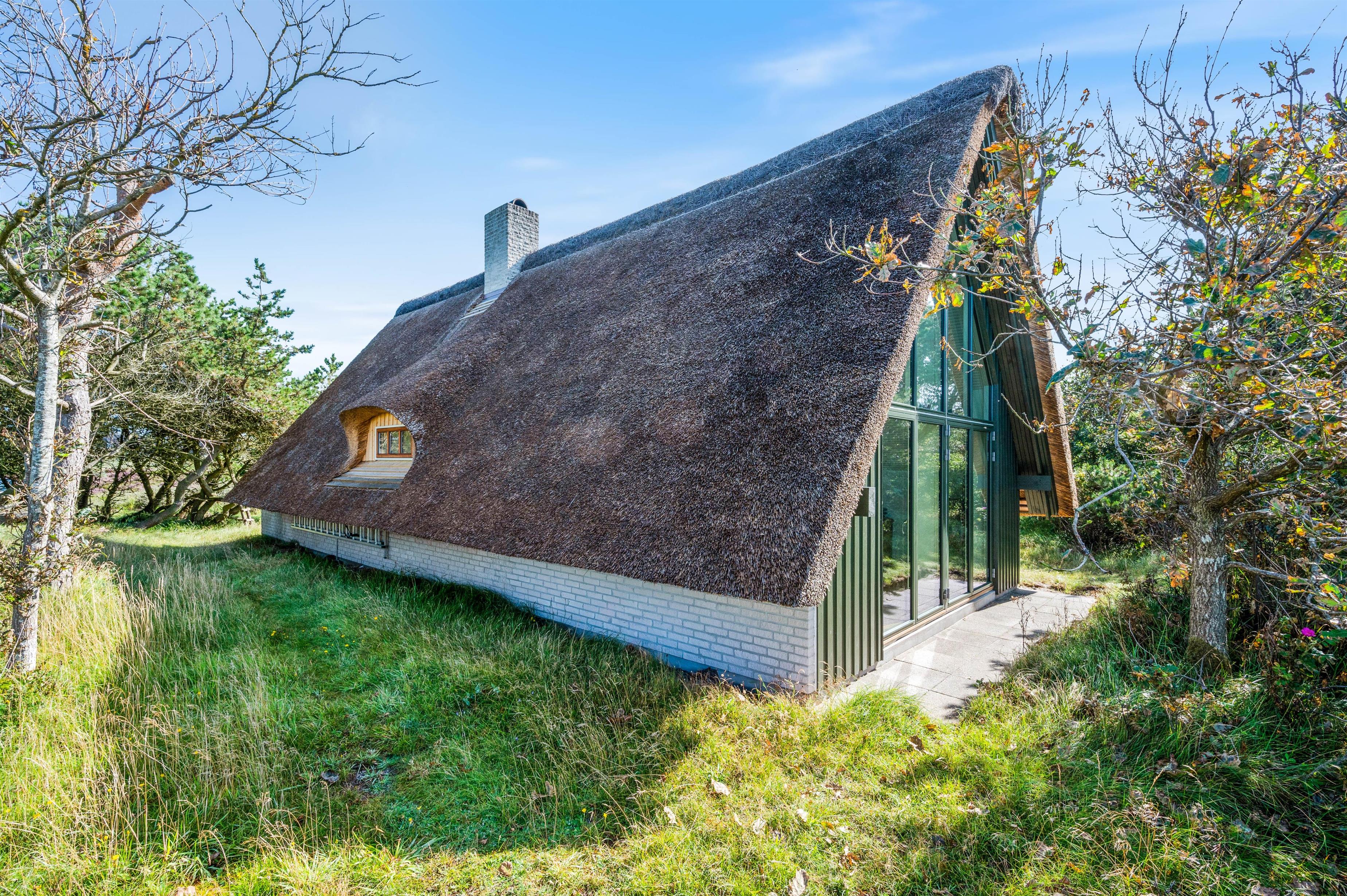 På Revlingevej 47 venter jer dette charmerende og rustikke A-hus med alle fornødenheder til den lille familie. Dette feriehus vil danne rammen om jeres dejlige ferie i det spændende og unikke Grærup-område, hvor feriehusene er integrerede i naturen - nærmest til dels skjulte i det kuperede landskab. Feriehuset er indrettet med et hyggeligt køkken/alrum, 2 gode soveværelser og et badeværelse med gulvvarme. I 2022 er der bygget en hyggelig udestue på, hvorfra I kan nyde naturen og det smukke lysindfald fra de store vinduer.