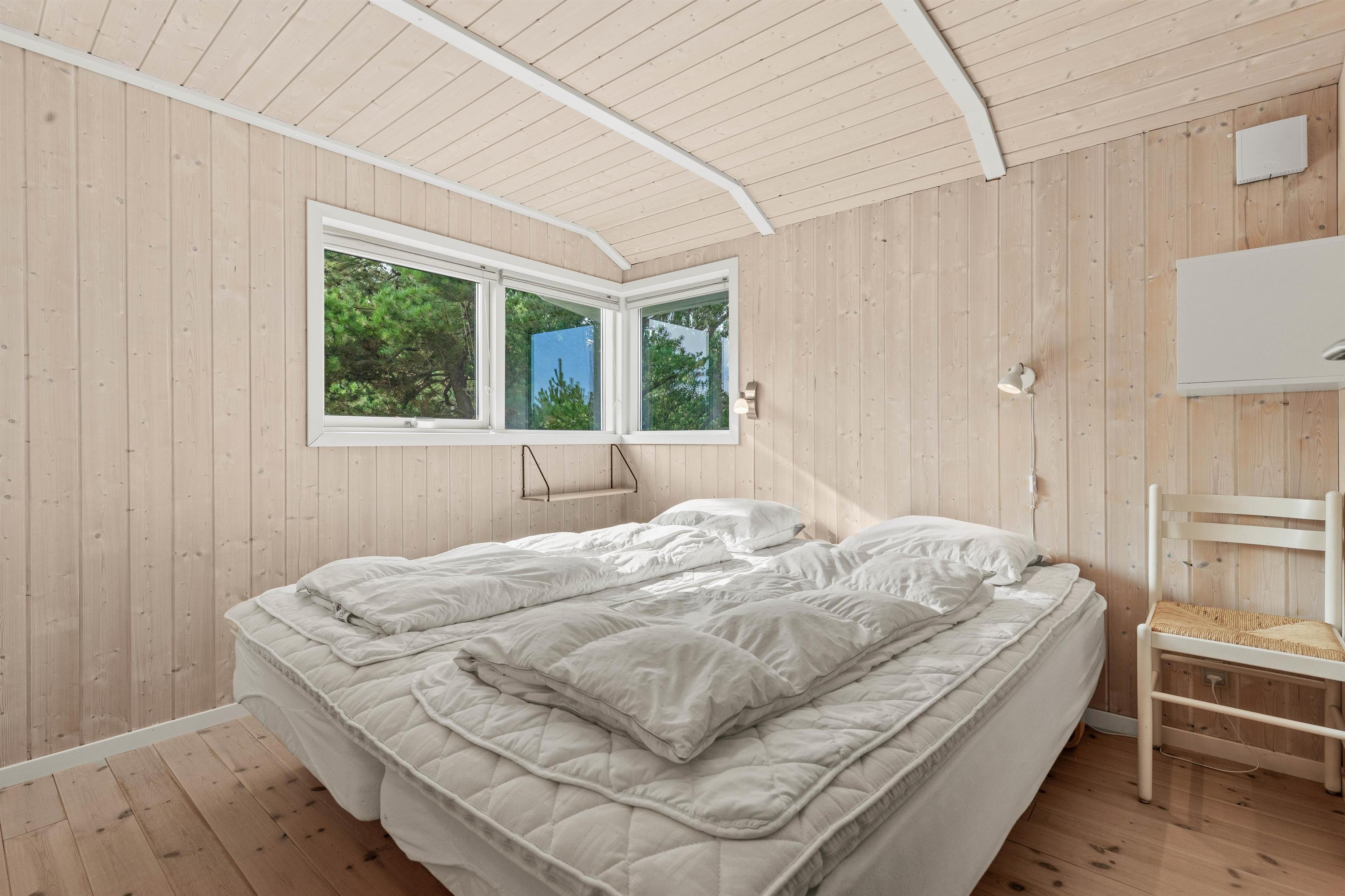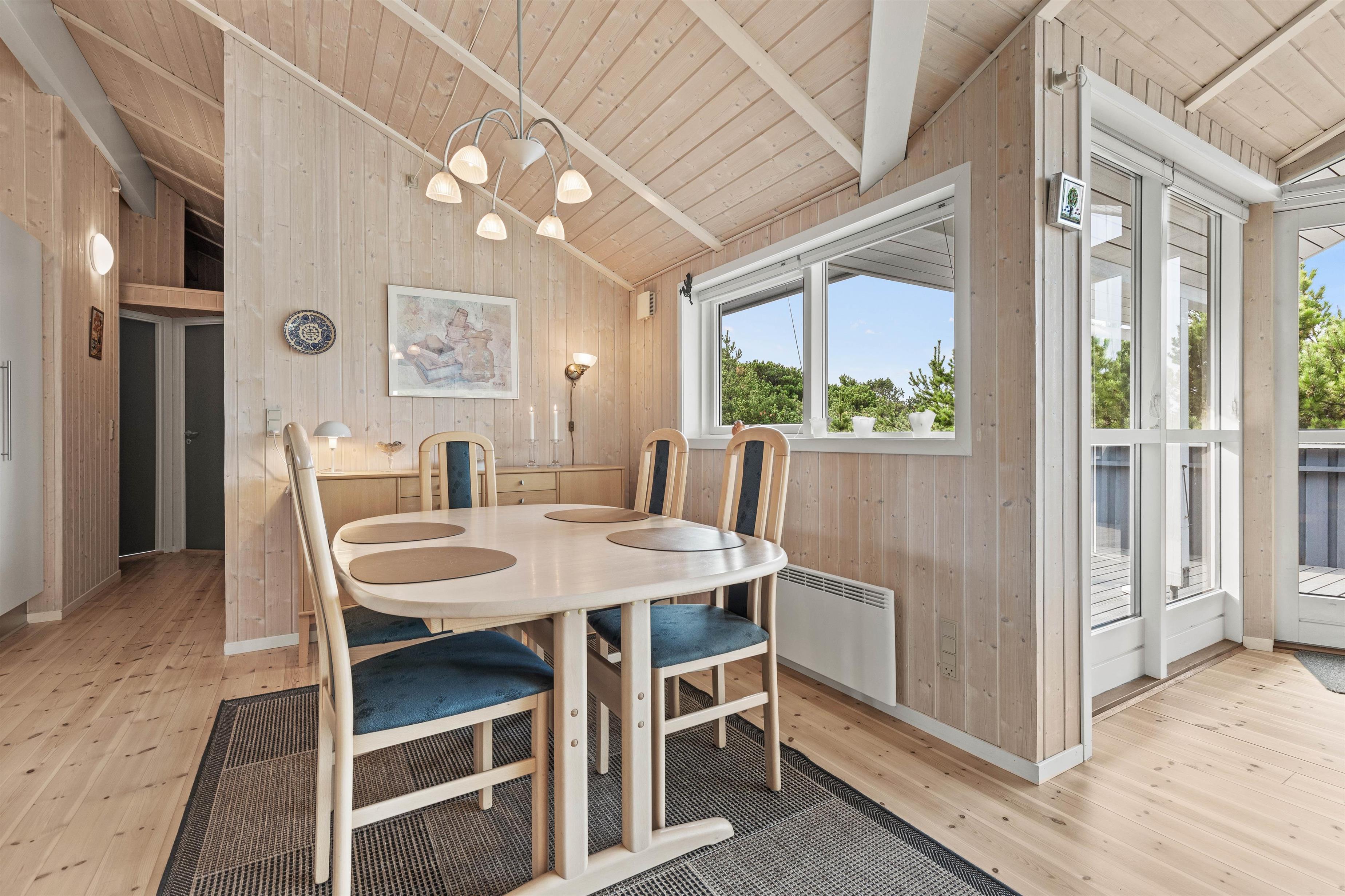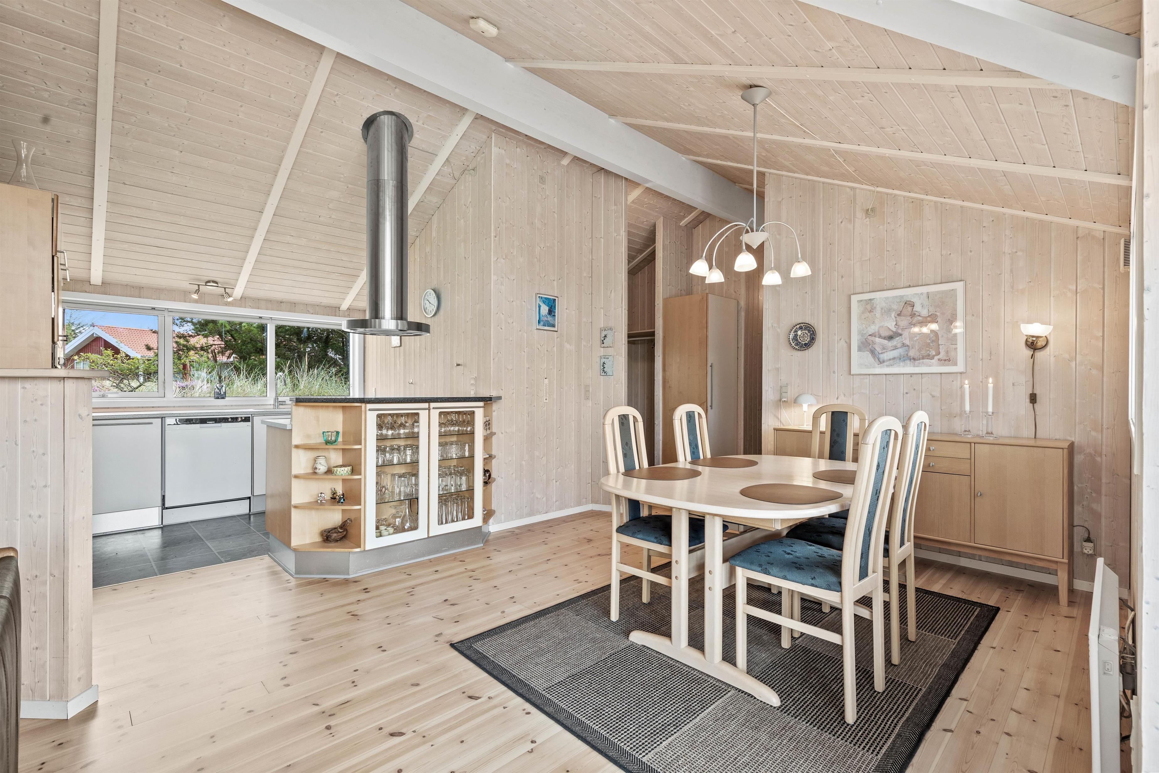 Så snart I træder ind ad døren på Lyngvej 18, bliver I mødt af lyse og venlige omgivelser. Træelementerne kombineret med de store glaspartier i stuen skaber en behagelig ferieatmosfære, og I vil med det samme føle jer godt tilpas i den personlige og detaljerige indretning.